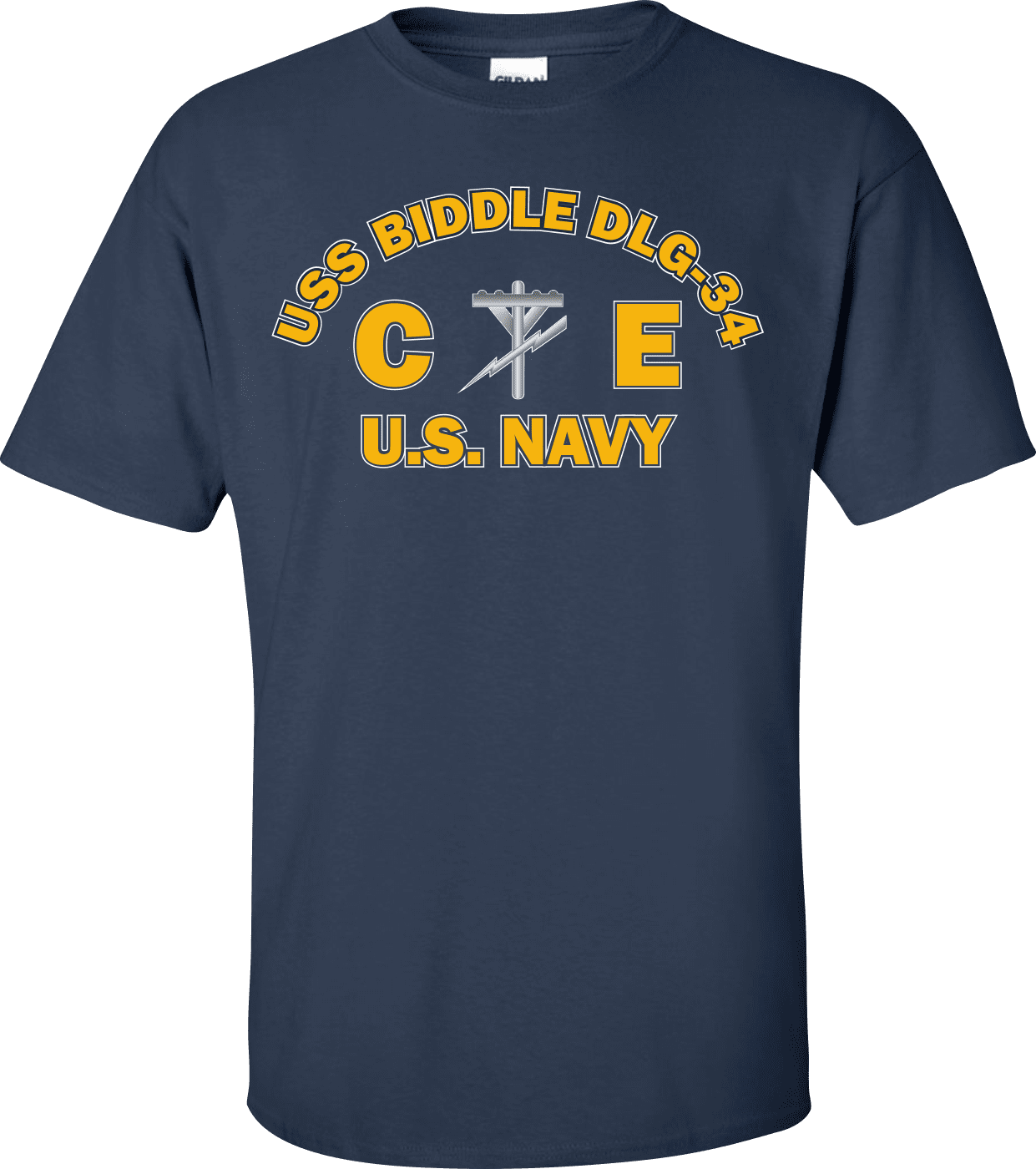 MilitaryBest is proud to offer this USS BIDDLE DLG-34 Rate CE Construction Electrician T-Shirt. This shirt is available as a 100% cotton t-shirt or a 100% polyester men’s or women’s moisture wicking t-shirt. Each shirt is proudly printed in the USA.