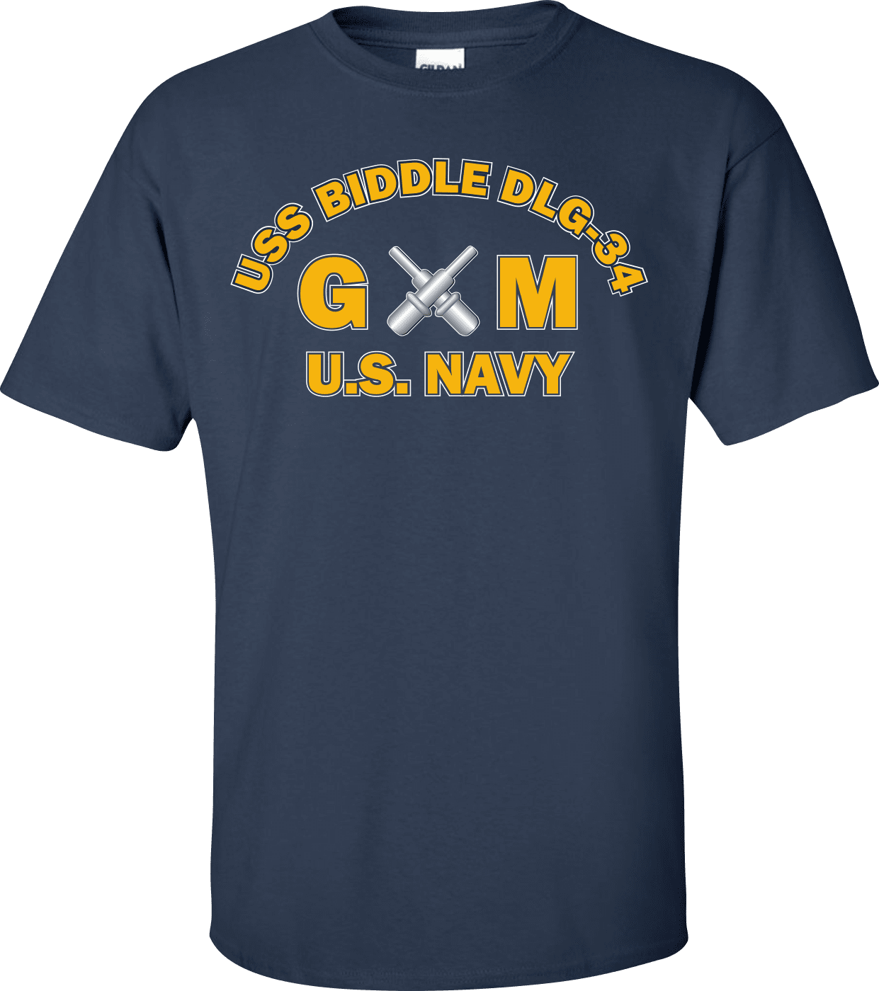 MilitaryBest is proud to offer this USS BIDDLE DLG-34 Rate GM Gunners Mate T-Shirt. This shirt is available as a 100% cotton t-shirt or a 100% polyester men’s or women’s moisture wicking t-shirt. Each shirt is proudly printed in the USA.