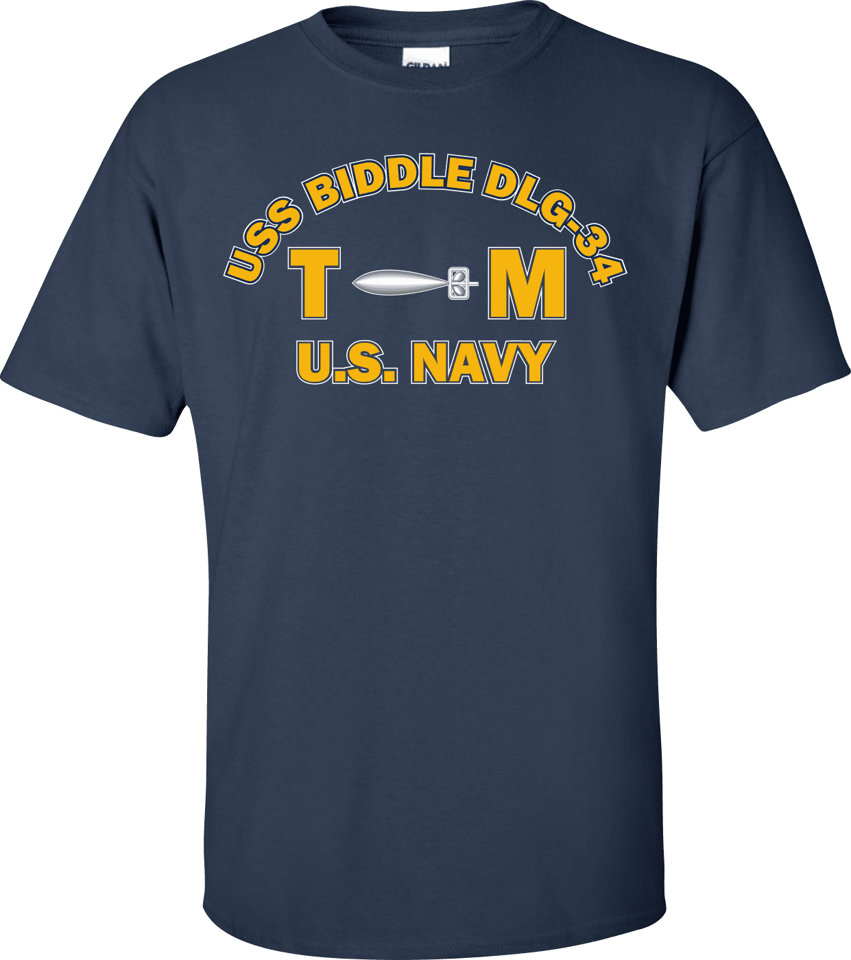 MilitaryBest is proud to offer this USS BIDDLE DLG-34 Rate TM Torpedomans Mate T-Shirt. This shirt is available as a 100% cotton t-shirt or a 100% polyester men’s or women’s moisture wicking t-shirt. Each shirt is proudly printed in the USA.