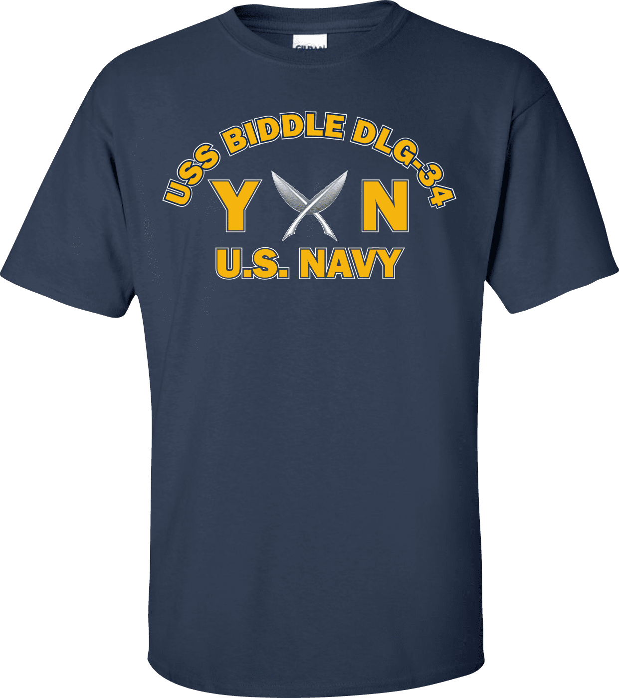 MilitaryBest is proud to offer this USS BIDDLE DLG-34 Rate YN Yeoman T-Shirt. This shirt is available as a 100% cotton t-shirt or a 100% polyester men’s or women’s moisture wicking t-shirt. Each shirt is proudly printed in the USA.