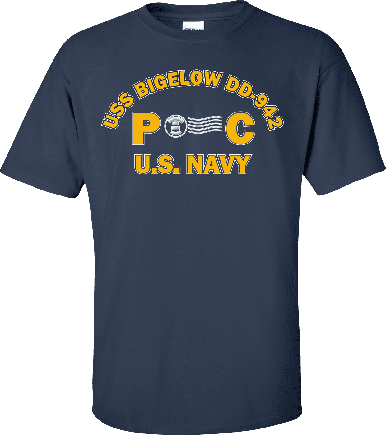 MilitaryBest is proud to offer this USS BIGELOW DD-942 Rate PC Postal Clerk T-Shirt. This shirt is available as a 100% cotton t-shirt or a 100% polyester men’s or women’s moisture wicking t-shirt. Each shirt is proudly printed in the USA.