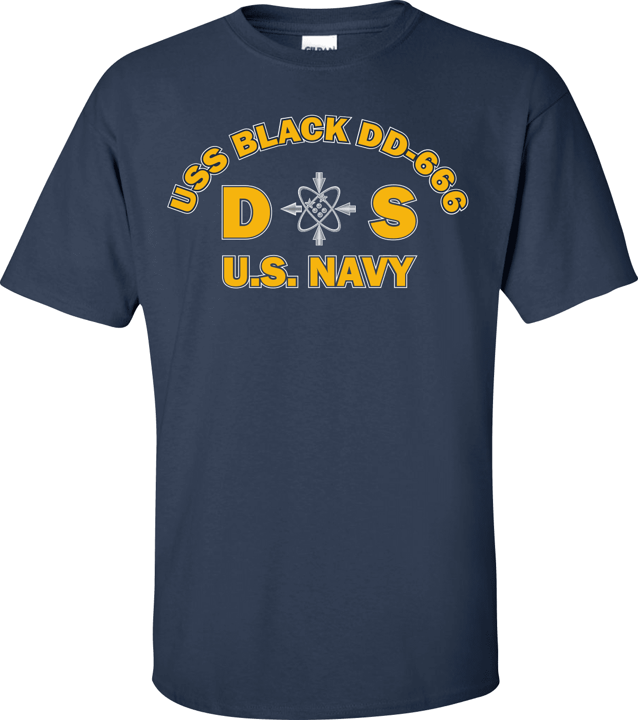 MilitaryBest is proud to offer this USS BLACK DD-666 Rate DS Data Systems Technician T-Shirt. This shirt is available as a 100% cotton t-shirt or a 100% polyester men’s or women’s moisture wicking t-shirt. Each shirt is proudly printed in the USA.