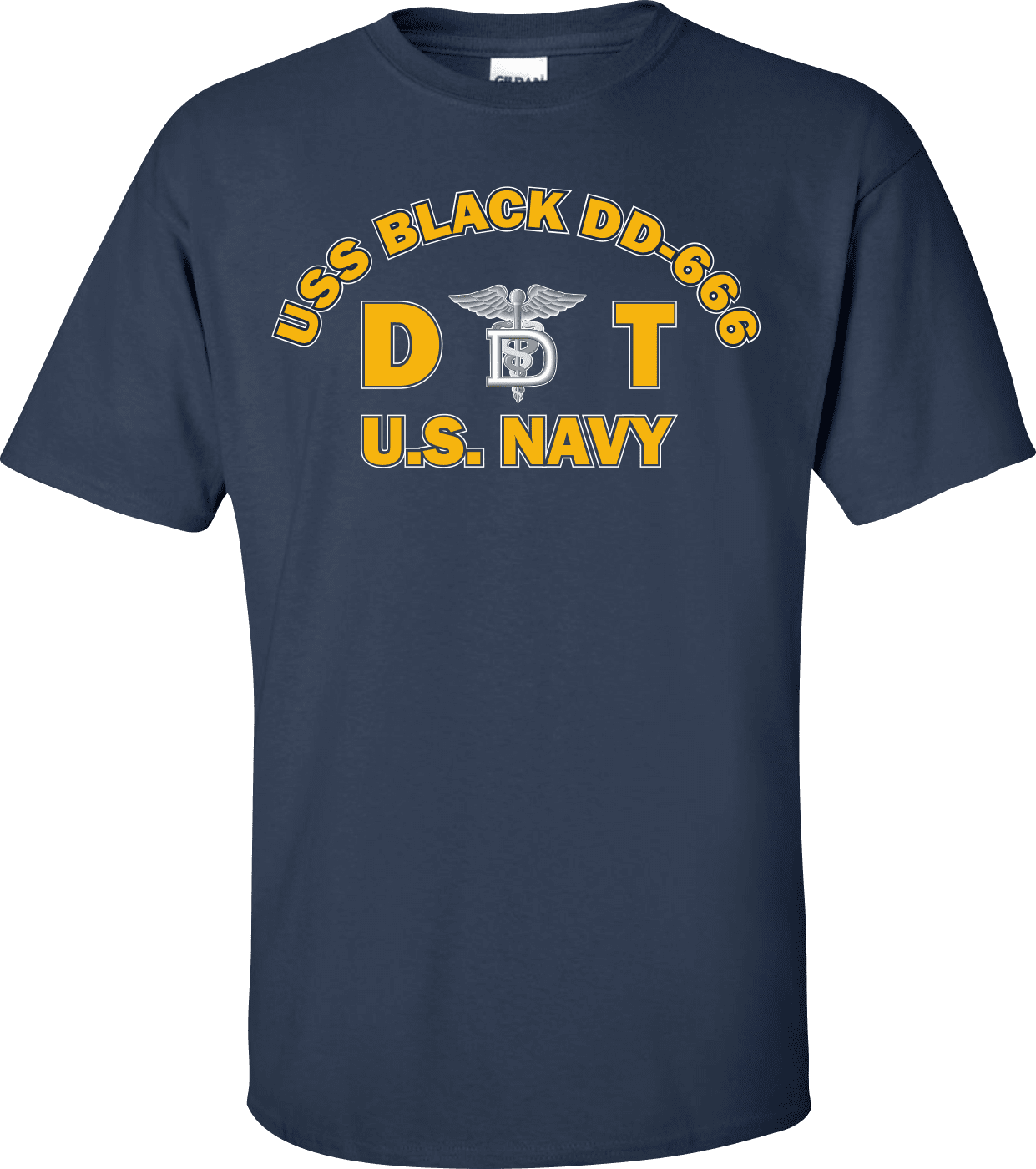 MilitaryBest is proud to offer this USS BLACK DD-666 Rate DT Dental Technician T-Shirt. This shirt is available as a 100% cotton t-shirt or a 100% polyester men’s or women’s moisture wicking t-shirt. Each shirt is proudly printed in the USA.