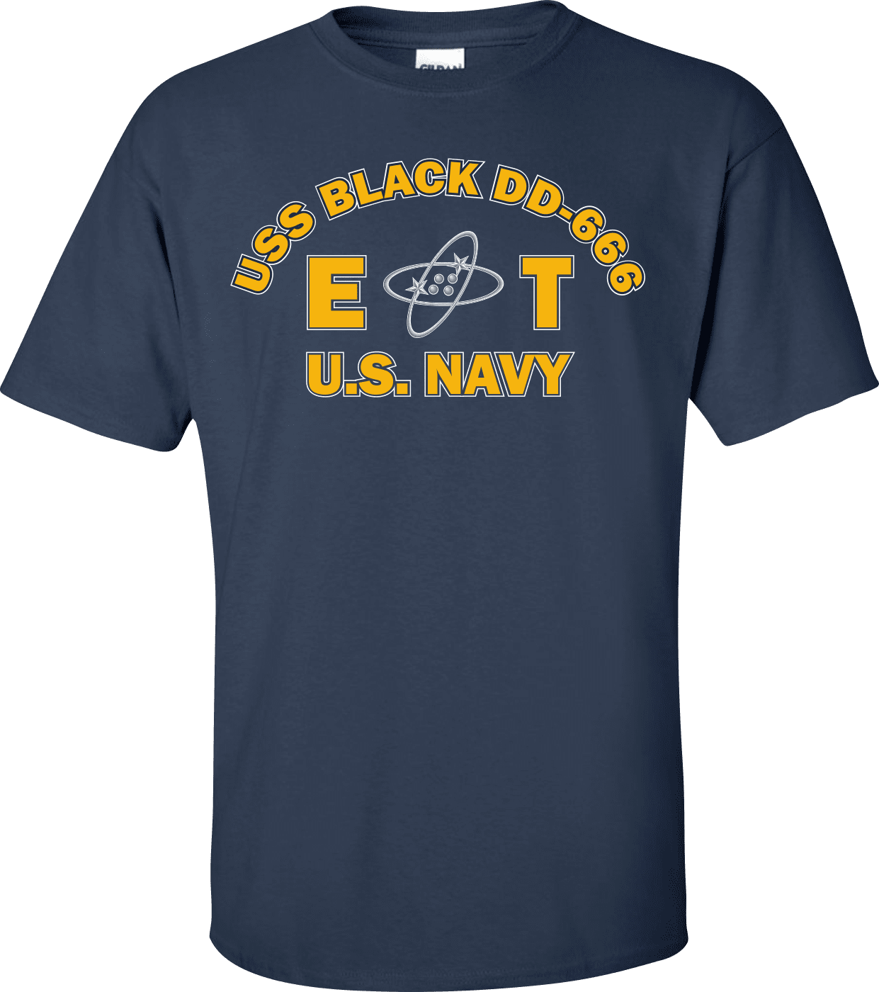 MilitaryBest is proud to offer this USS BLACK DD-666 Rate ET Electronics Technician T-Shirt. This shirt is available as a 100% cotton t-shirt or a 100% polyester men’s or women’s moisture wicking t-shirt. Each shirt is proudly printed in the USA.
