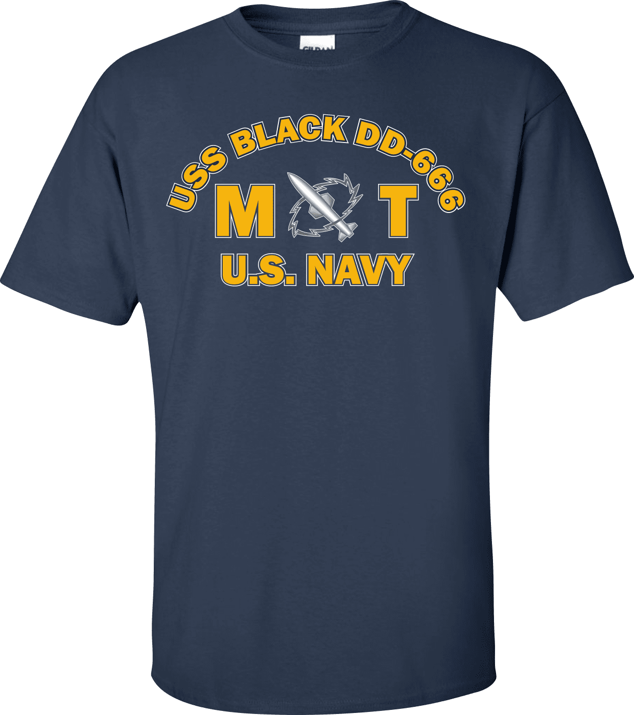MilitaryBest is proud to offer this USS BLACK DD-666 Rate MT Missile Technician T-Shirt. This shirt is available as a 100% cotton t-shirt or a 100% polyester men’s or women’s moisture wicking t-shirt. Each shirt is proudly printed in the USA.