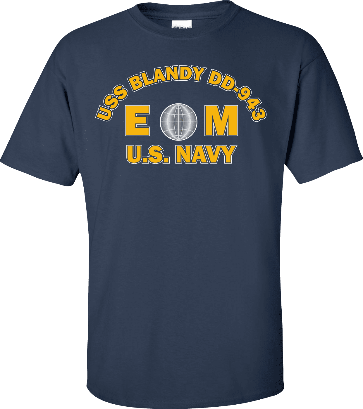 MilitaryBest is proud to offer this USS BLANDY DD-943 Rate EM Electricians Mate T-Shirt. This shirt is available as a 100% cotton t-shirt or a 100% polyester men’s or women’s moisture wicking t-shirt. Each shirt is proudly printed in the USA.