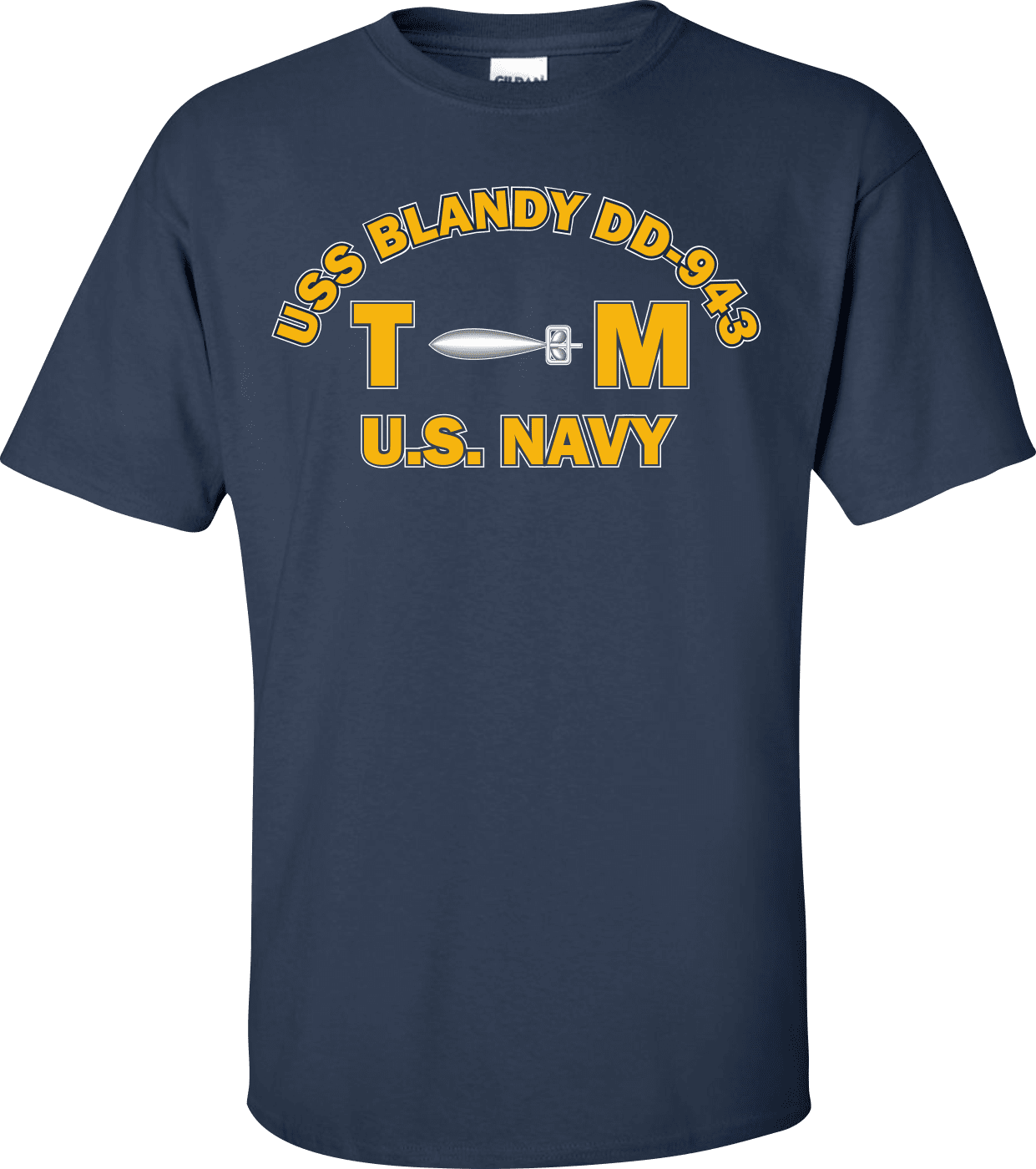 MilitaryBest is proud to offer this USS BLANDY DD-943 Rate TM Torpedomans Mate T-Shirt. This shirt is available as a 100% cotton t-shirt or a 100% polyester men’s or women’s moisture wicking t-shirt. Each shirt is proudly printed in the USA.