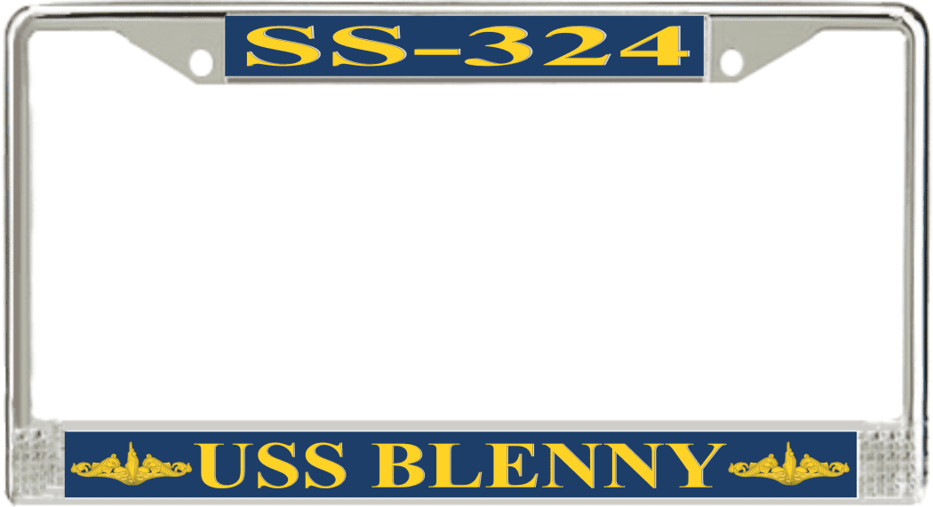 USS Blenny SS-324 License Plate Frame This USS Blenny SS-324 License Plate Frame is proudly made in the USA at our facilities in Scottsboro, Alabama. Each Frame features top and bottom sublimated design strips that are poly coated for a protective gloss finish. Please check your state and local regulations for compatibility of these frames for use on your vehicle.