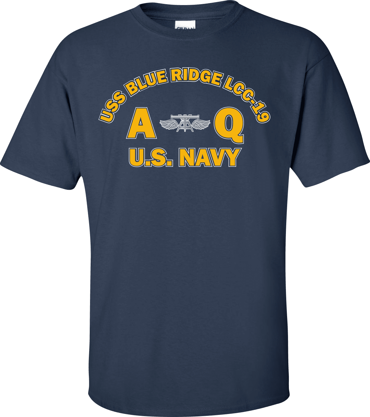 MilitaryBest is proud to offer this USS BLUE RIDGE LCC-19 Rate AQ Aviation Fire Control Technician T-Shirt. This shirt is available as a 100% cotton t-shirt or a 100% polyester men’s or women’s moisture wicking t-shirt. Each shirt is proudly printed in the USA.