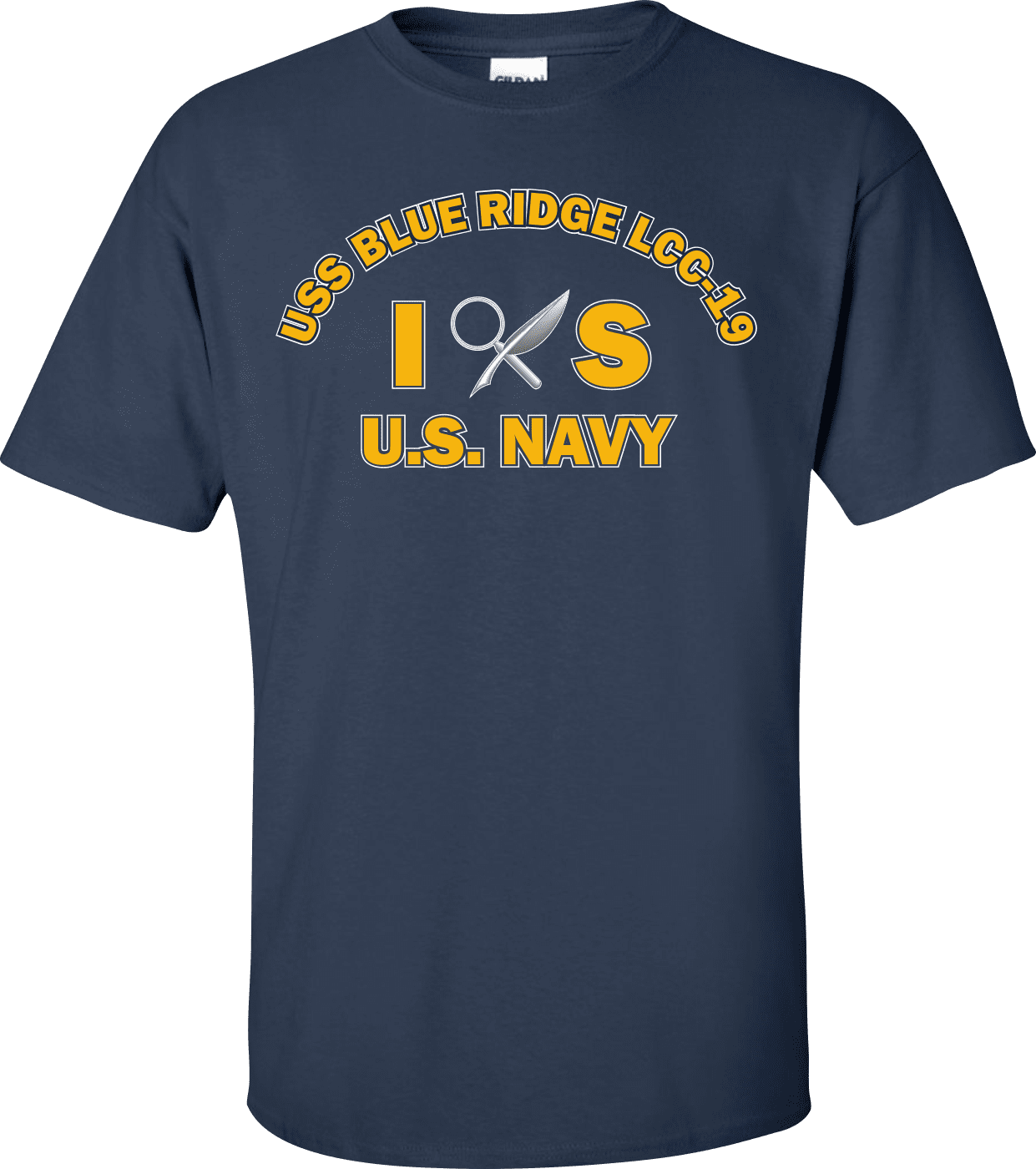 MilitaryBest is proud to offer this USS BLUE RIDGE LCC-19 Rate IS Intelligence Specialist T-Shirt. This shirt is available as a 100% cotton t-shirt or a 100% polyester men’s or women’s moisture wicking t-shirt. Each shirt is proudly printed in the USA.