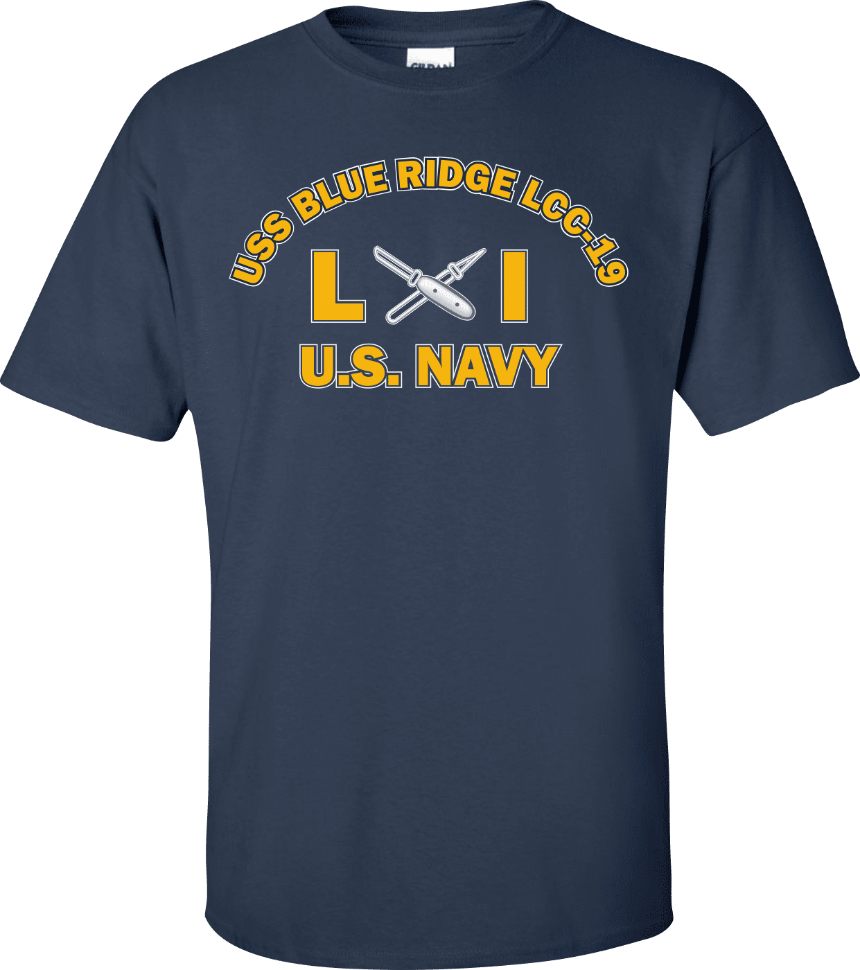 MilitaryBest is proud to offer this USS BLUE RIDGE LCC-19 Rate LI Lithographer T-Shirt. This shirt is available as a 100% cotton t-shirt or a 100% polyester men’s or women’s moisture wicking t-shirt. Each shirt is proudly printed in the USA.