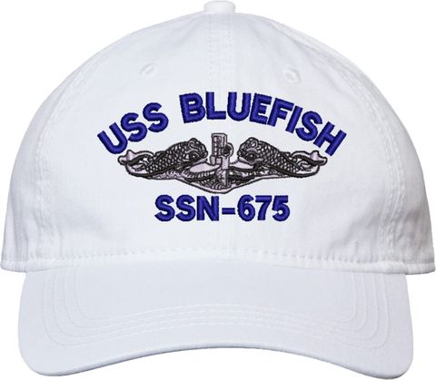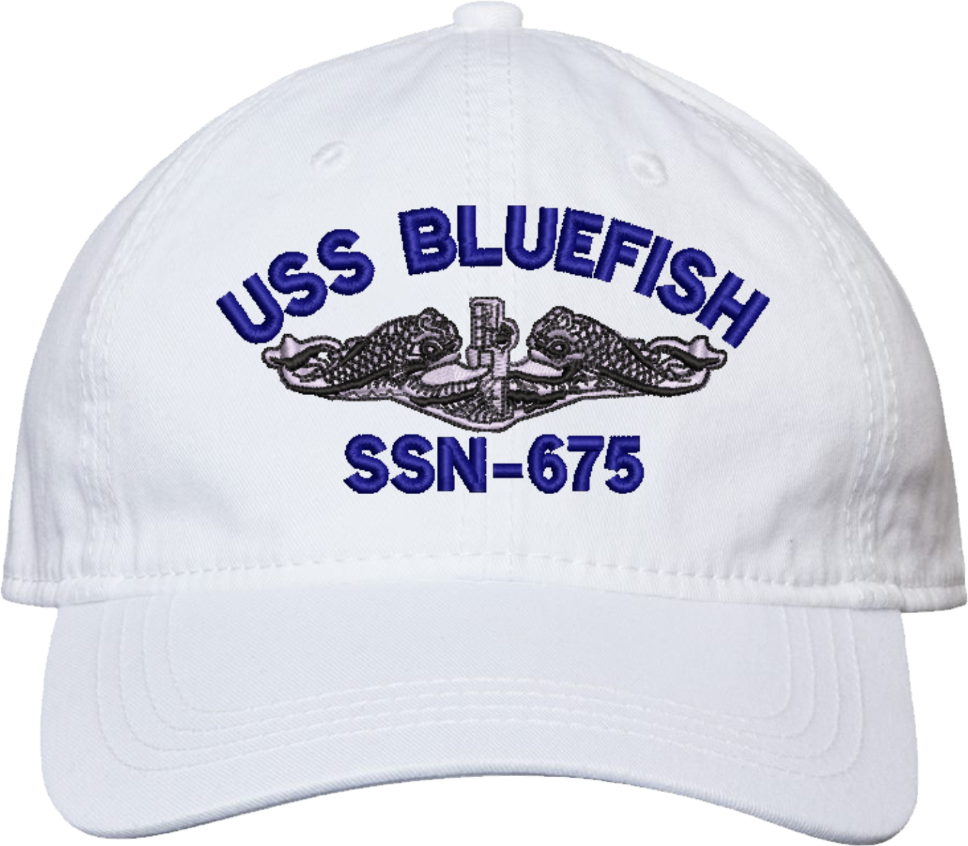 Show your Navy pride with this USS Bluefish SSN-675 with Dolphins Unstructured Dad Cap from MilitaryBest. Crafted from 100% washed chino twill cotton, this six-panel, low-profile cap offers a relaxed and comfortable fit. Featuring high-quality embroidery done in our Scottsboro, Alabama facility, this cap is designed with a pre-curved visor and an adjustable tri-glide buckle closure for a perfect fit. Whether for everyday wear or as a meaningful gift, this cap is a great way to honor your own or a loved one's service.For caps ordered with custom embroidered personalized text please allow an additional 3 to 5 days production time. All custom back text will be embroidered in ALL CAPITAL LETTERS. Caps with back text or eggs are non-returnable unless there is a material defect in the cap.