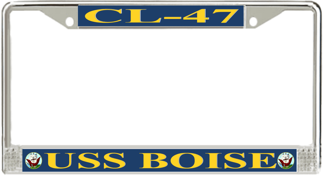 USS Boise CL-47 License Plate FrameThis USS Boise CL-47 License Plate Frame is proudly made in the USA at our facilities in Scottsboro, Alabama. Each of our MilitaryBest U.S. Navy Frames feature top and bottom Poly Coated Aluminum strips that are printed using sublimation which gives these quality automobile military frames a beautiful high gloss finish.