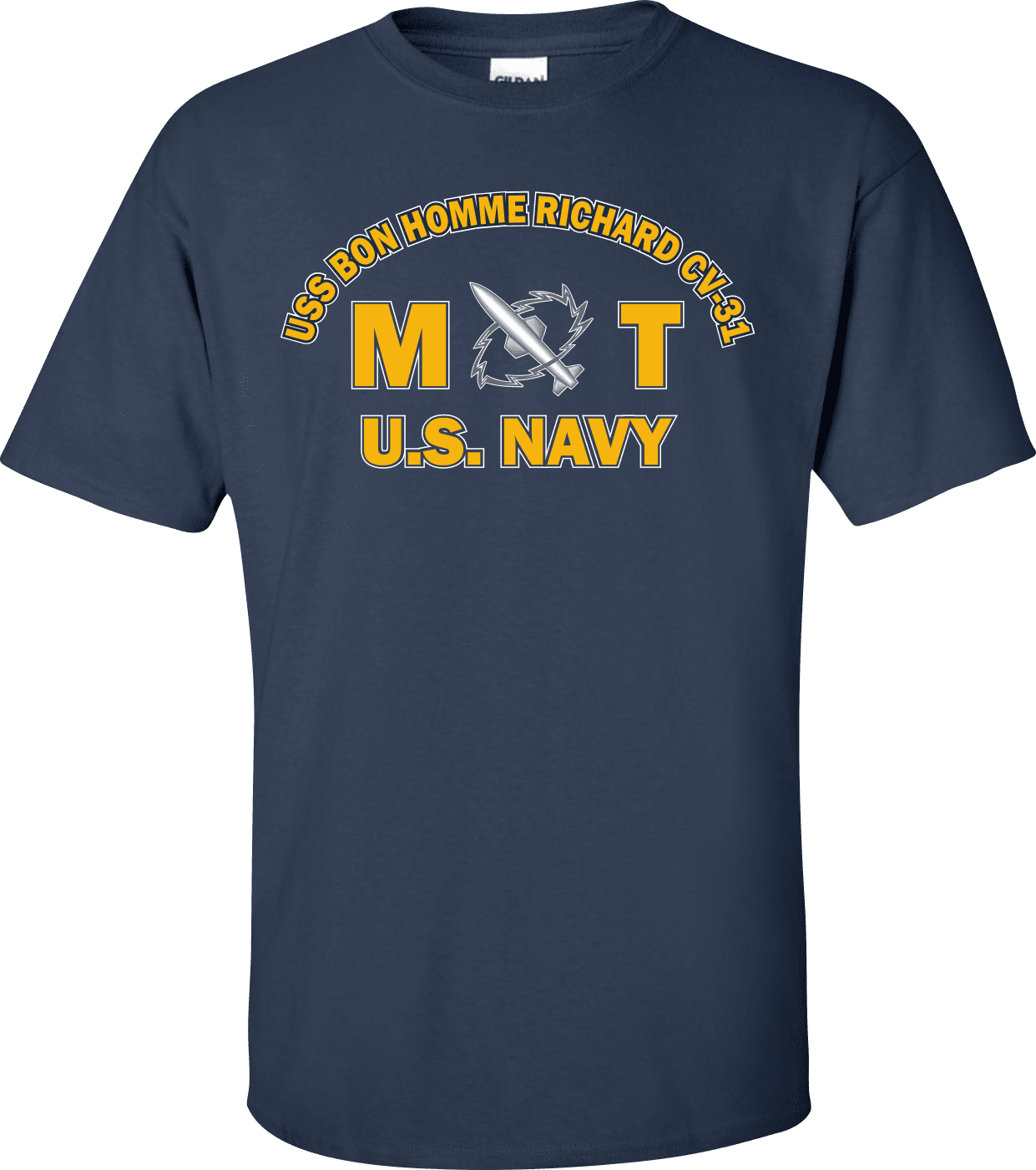 MilitaryBest is proud to offer this USS BON HOMME RICHARD CV-31 Rate MT Missile Technician T-Shirt. This shirt is available as a 100% cotton t-shirt or a 100% polyester men’s or women’s moisture wicking t-shirt. Each shirt is proudly printed in the USA.