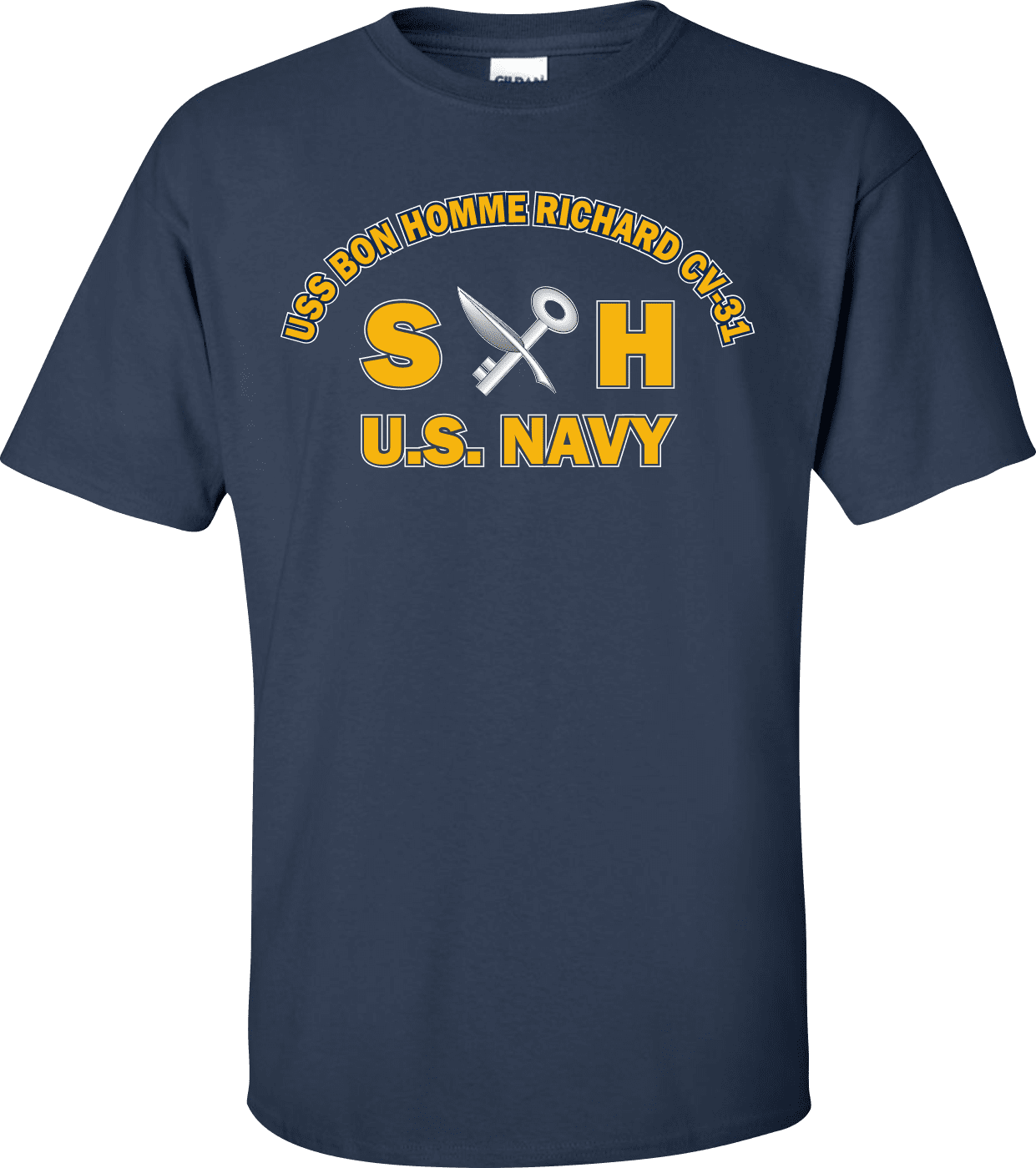 MilitaryBest is proud to offer this USS BON HOMME RICHARD CV-31 Rate SH Ships Serviceman T-Shirt. This shirt is available as a 100% cotton t-shirt or a 100% polyester men’s or women’s moisture wicking t-shirt. Each shirt is proudly printed in the USA.