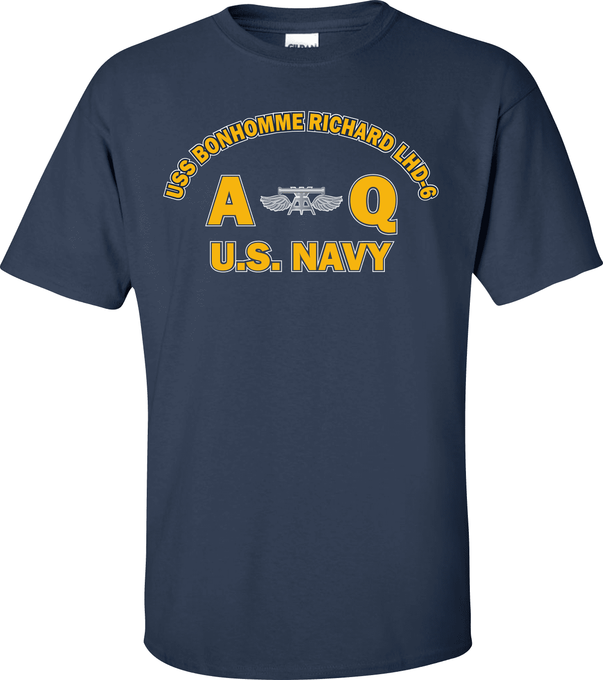 MilitaryBest is proud to offer this USS BONHOMME RICHARD LHD-6 Rate AQ Aviation Fire Control Technician T-Shirt. This shirt is available as a 100% cotton t-shirt or a 100% polyester men’s or women’s moisture wicking t-shirt. Each shirt is proudly printed in the USA.