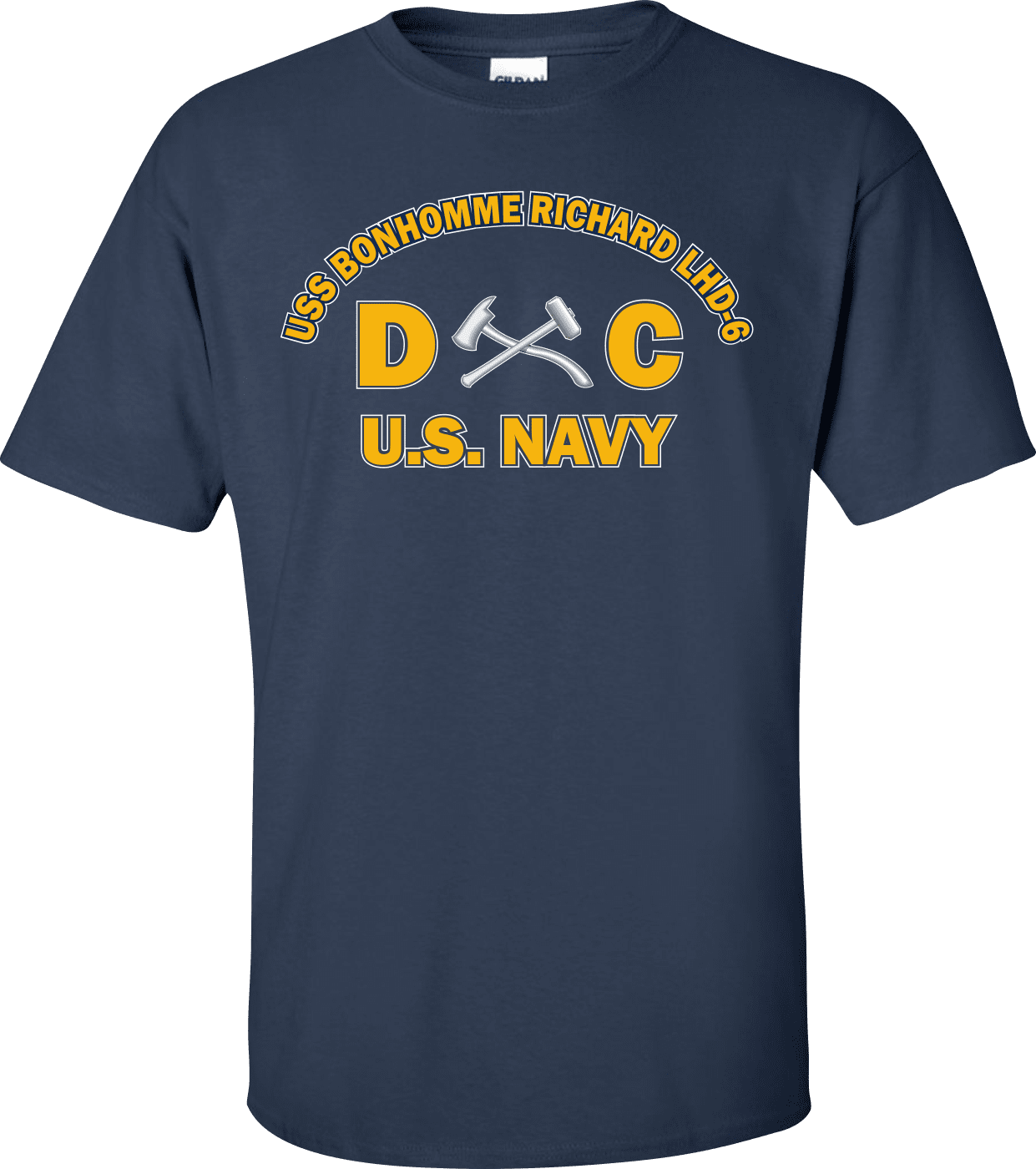 MilitaryBest is proud to offer this USS BONHOMME RICHARD LHD-6 Rate DC Damage Controlman T-Shirt. This shirt is available as a 100% cotton t-shirt or a 100% polyester men’s or women’s moisture wicking t-shirt. Each shirt is proudly printed in the USA.