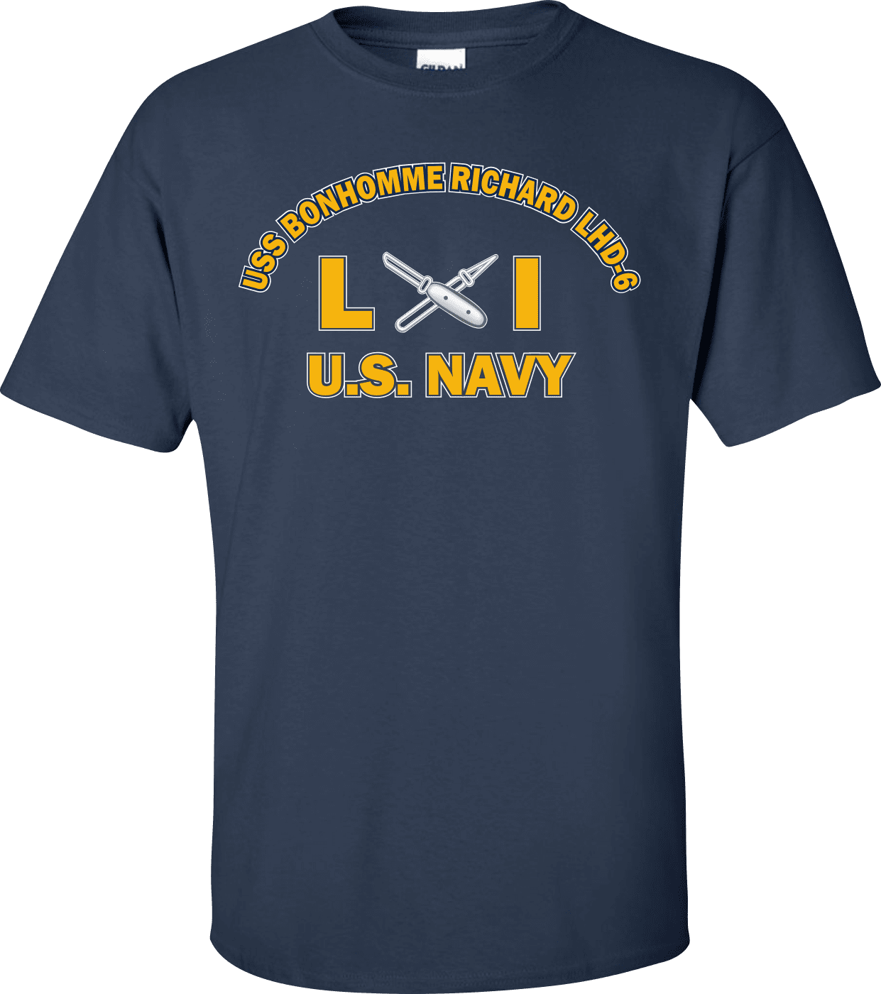 MilitaryBest is proud to offer this USS BONHOMME RICHARD LHD-6 Rate LI Lithographer T-Shirt. This shirt is available as a 100% cotton t-shirt or a 100% polyester men’s or women’s moisture wicking t-shirt. Each shirt is proudly printed in the USA.
