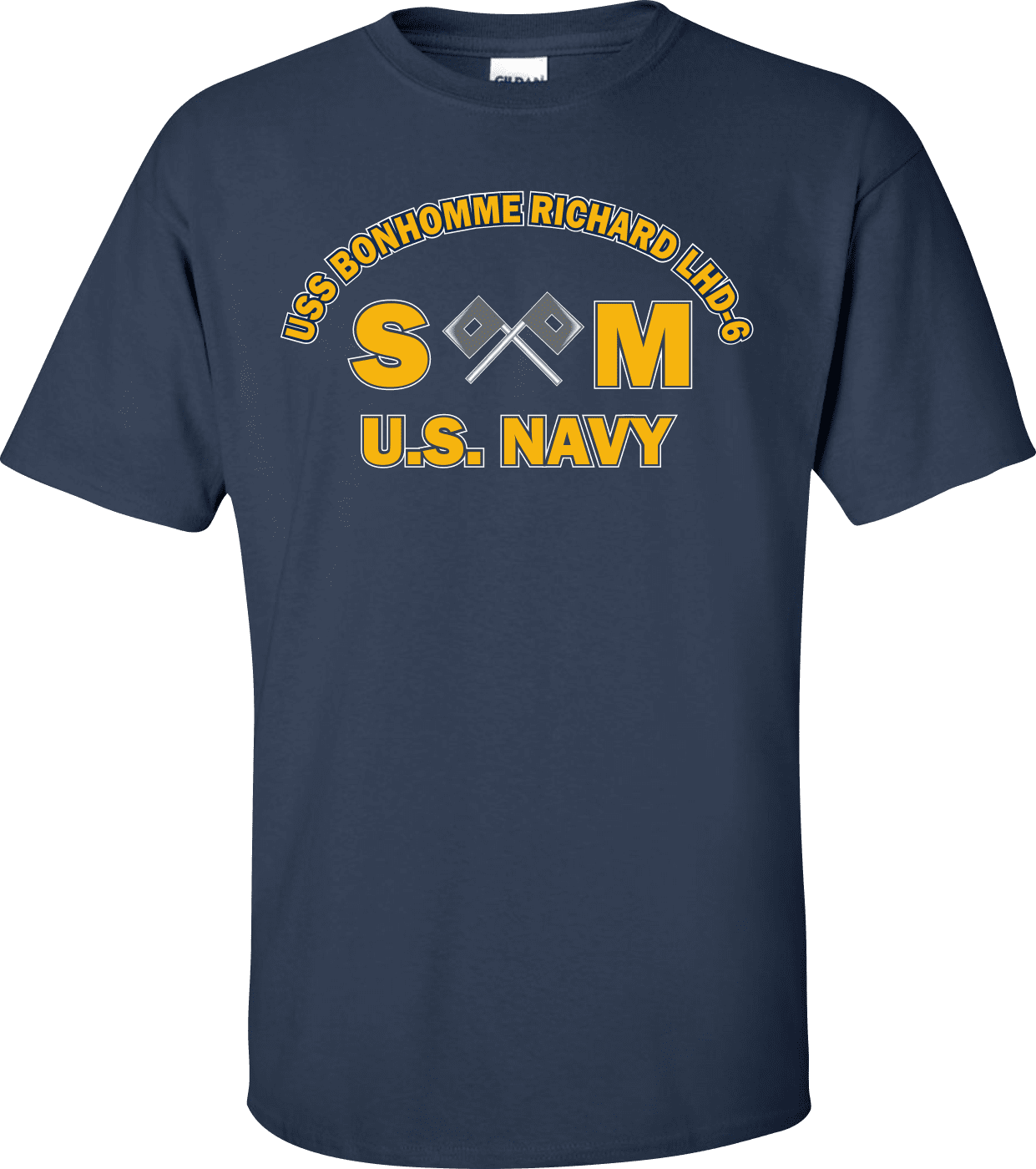 MilitaryBest is proud to offer this USS BONHOMME RICHARD LHD-6 Rate SM Signalman T-Shirt. This shirt is available as a 100% cotton t-shirt or a 100% polyester men’s or women’s moisture wicking t-shirt. Each shirt is proudly printed in the USA.