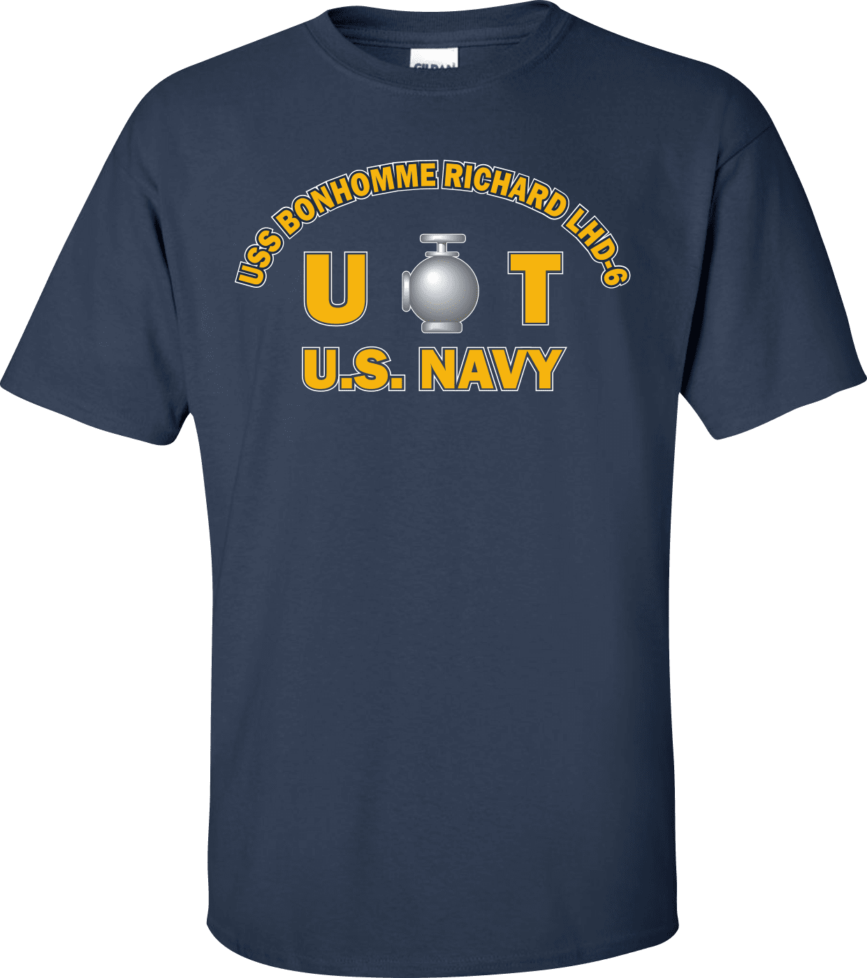 MilitaryBest is proud to offer this USS BONHOMME RICHARD LHD-6 Rate UT Utilitiesman T-Shirt. This shirt is available as a 100% cotton t-shirt or a 100% polyester men’s or women’s moisture wicking t-shirt. Each shirt is proudly printed in the USA.