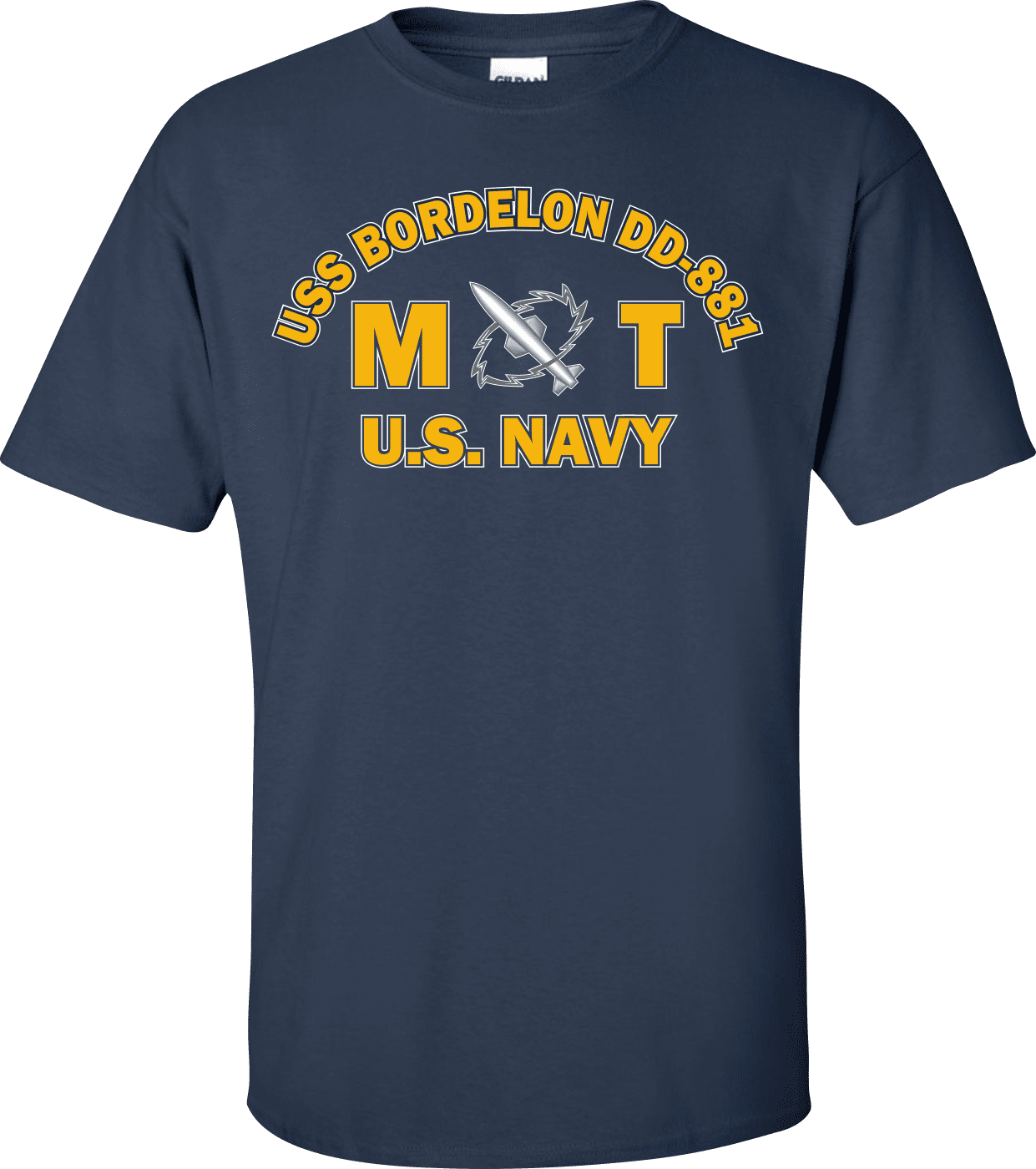 MilitaryBest is proud to offer this USS BORDELON DD-881 Rate MT Missile Technician T-Shirt. This shirt is available as a 100% cotton t-shirt or a 100% polyester men’s or women’s moisture wicking t-shirt. Each shirt is proudly printed in the USA.