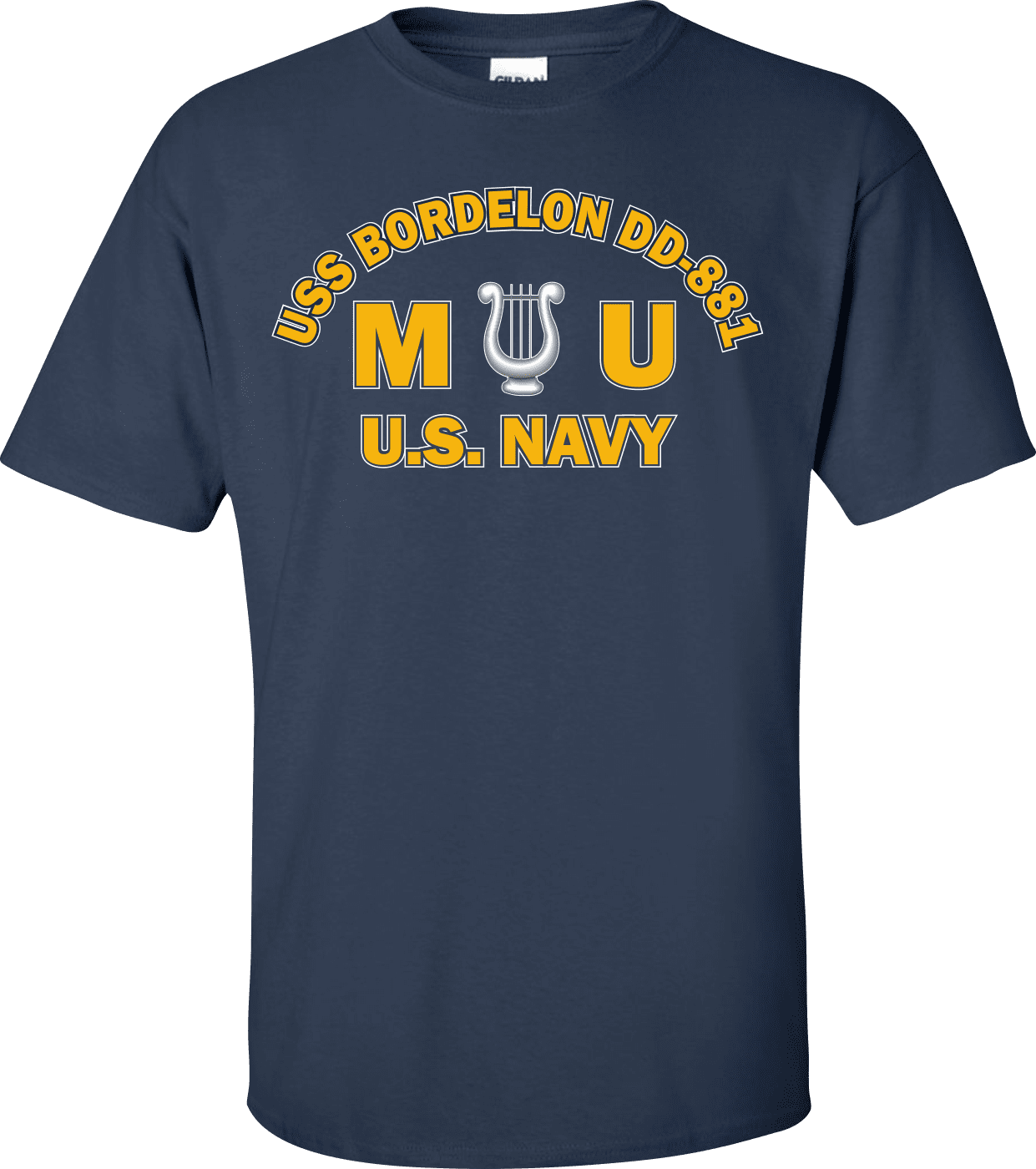 MilitaryBest is proud to offer this USS BORDELON DD-881 Rate MU Musician T-Shirt. This shirt is available as a 100% cotton t-shirt or a 100% polyester men’s or women’s moisture wicking t-shirt. Each shirt is proudly printed in the USA.