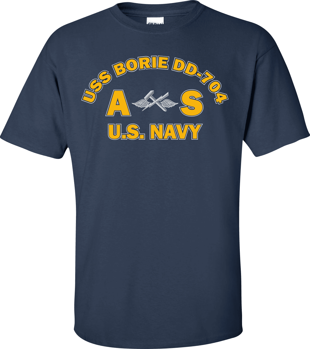MilitaryBest is proud to offer this USS BORIE DD-704 Rate AS Aviation Support Equipment Technician T-Shirt. This shirt is available as a 100% cotton t-shirt or a 100% polyester men’s or women’s moisture wicking t-shirt. Each shirt is proudly printed in the USA.