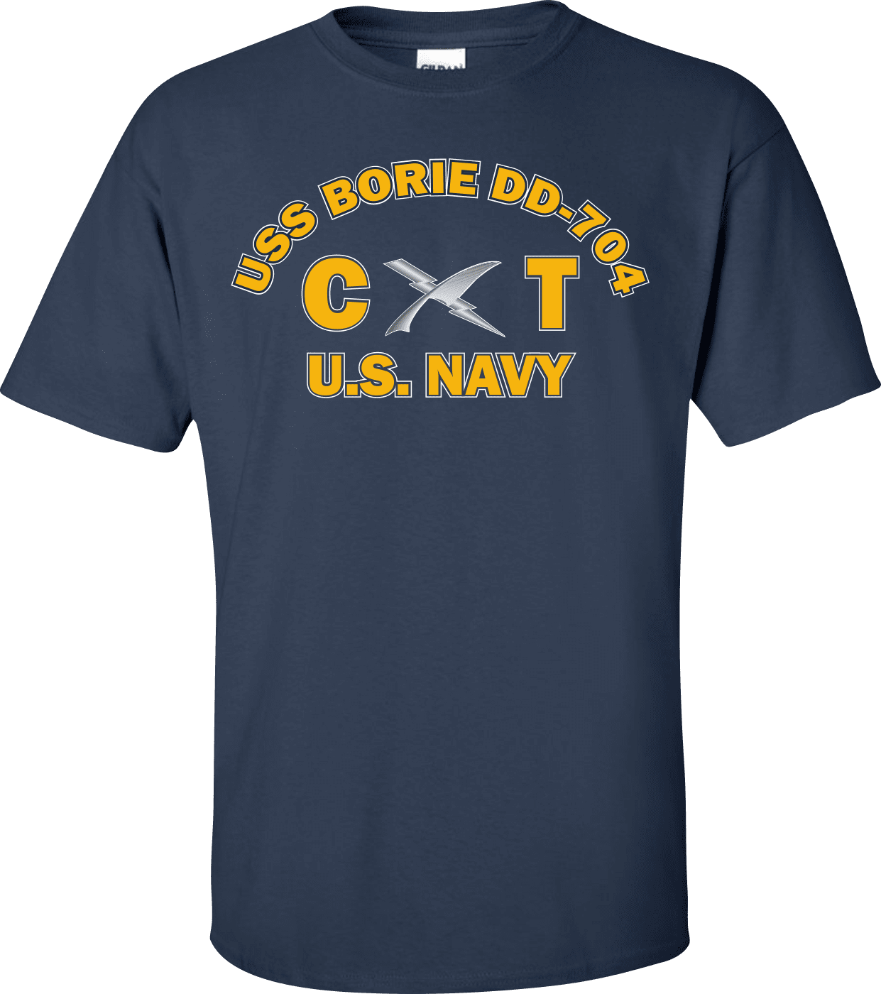 MilitaryBest is proud to offer this USS BORIE DD-704 Rate CT Cryptologic Technician T-Shirt. This shirt is available as a 100% cotton t-shirt or a 100% polyester men’s or women’s moisture wicking t-shirt. Each shirt is proudly printed in the USA.