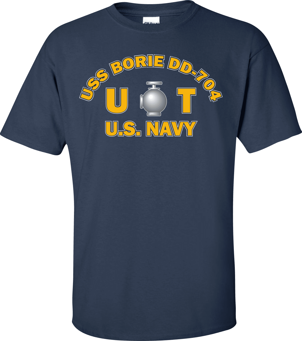 MilitaryBest is proud to offer this USS BORIE DD-704 Rate UT Utilitiesman T-Shirt. This shirt is available as a 100% cotton t-shirt or a 100% polyester men’s or women’s moisture wicking t-shirt. Each shirt is proudly printed in the USA.