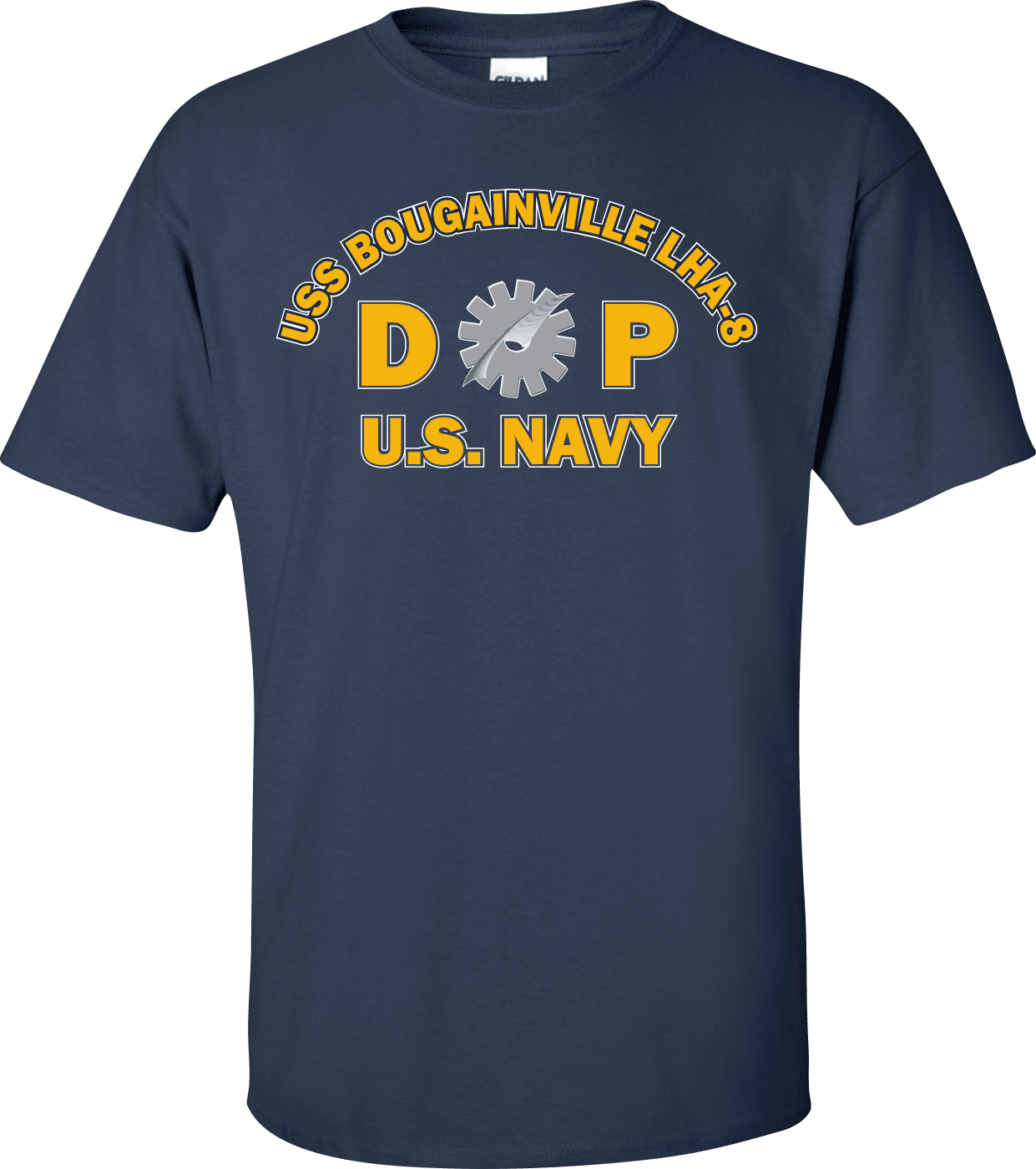 MilitaryBest is proud to offer this USS BOUGAINVILLE LHA-8 Rate DP Data Processing Technician T-Shirt. This shirt is available as a 100% cotton t-shirt or a 100% polyester men’s or women’s moisture wicking t-shirt. Each shirt is proudly printed in the USA.