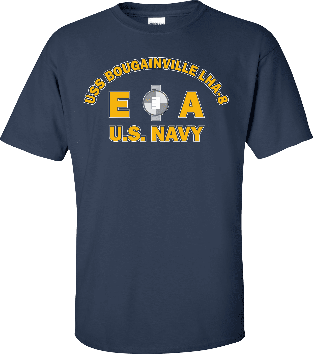 MilitaryBest is proud to offer this USS BOUGAINVILLE LHA-8 Rate EA Engineering Aide T-Shirt. This shirt is available as a 100% cotton t-shirt or a 100% polyester men’s or women’s moisture wicking t-shirt. Each shirt is proudly printed in the USA.