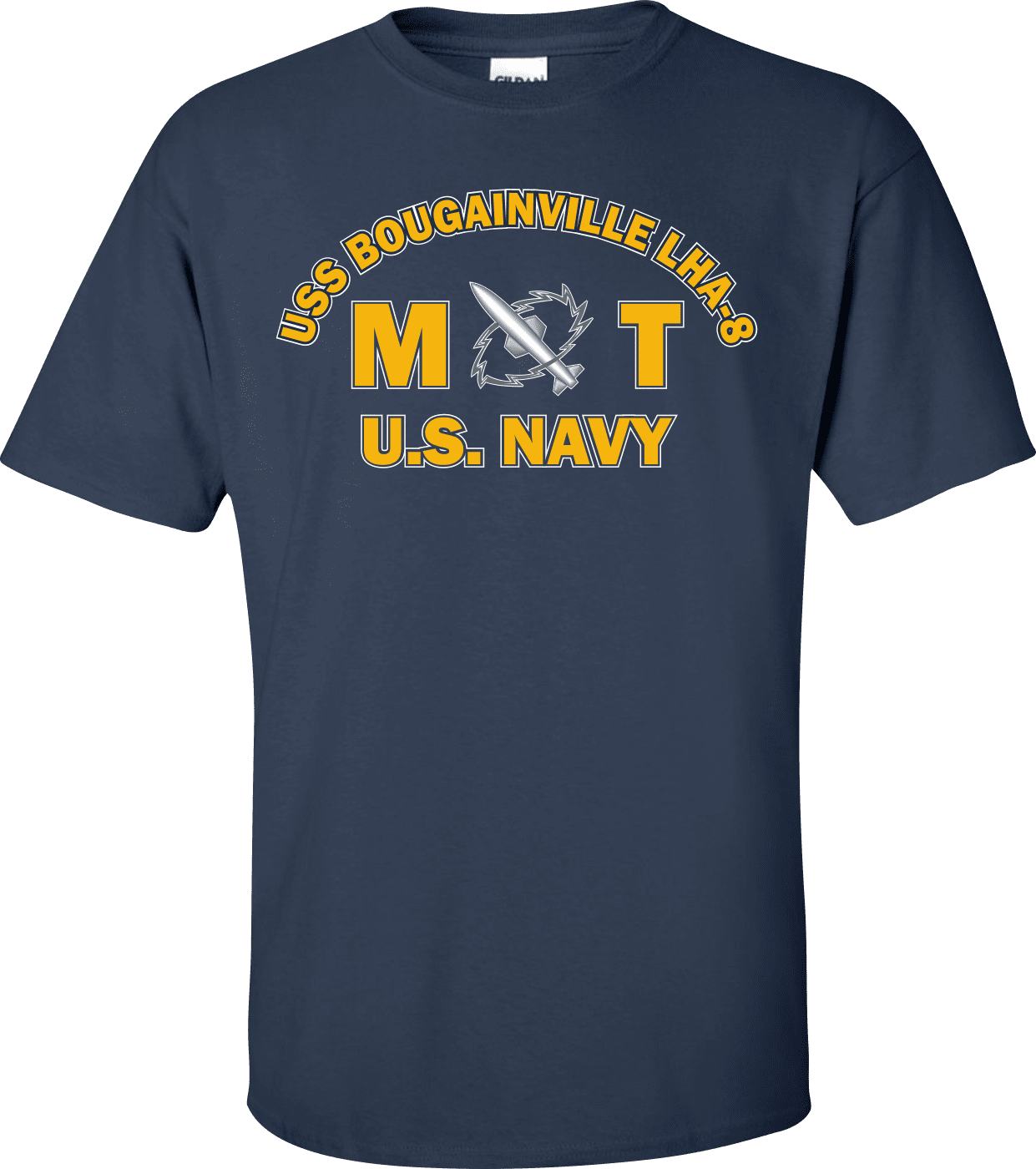 MilitaryBest is proud to offer this USS BOUGAINVILLE LHA-8 Rate MT Missile Technician T-Shirt. This shirt is available as a 100% cotton t-shirt or a 100% polyester men’s or women’s moisture wicking t-shirt. Each shirt is proudly printed in the USA.