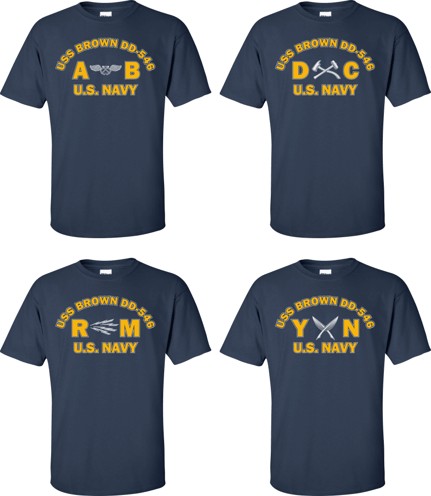 Due to disruptions in supply chains, this design will be embroidered on a Champion, Gildan, Jerzees or comparable brand.Proudly display your ship and rate with our top quality USS BROWN DD-546 Rates t-shirts, sweatshirts, and hoodies. These fine U.S. Navy apparel items will make you the envy of your veteran buddies, or will make a fine gift! Our USS BROWN DD-546 shirts are proudly printed in the USA!