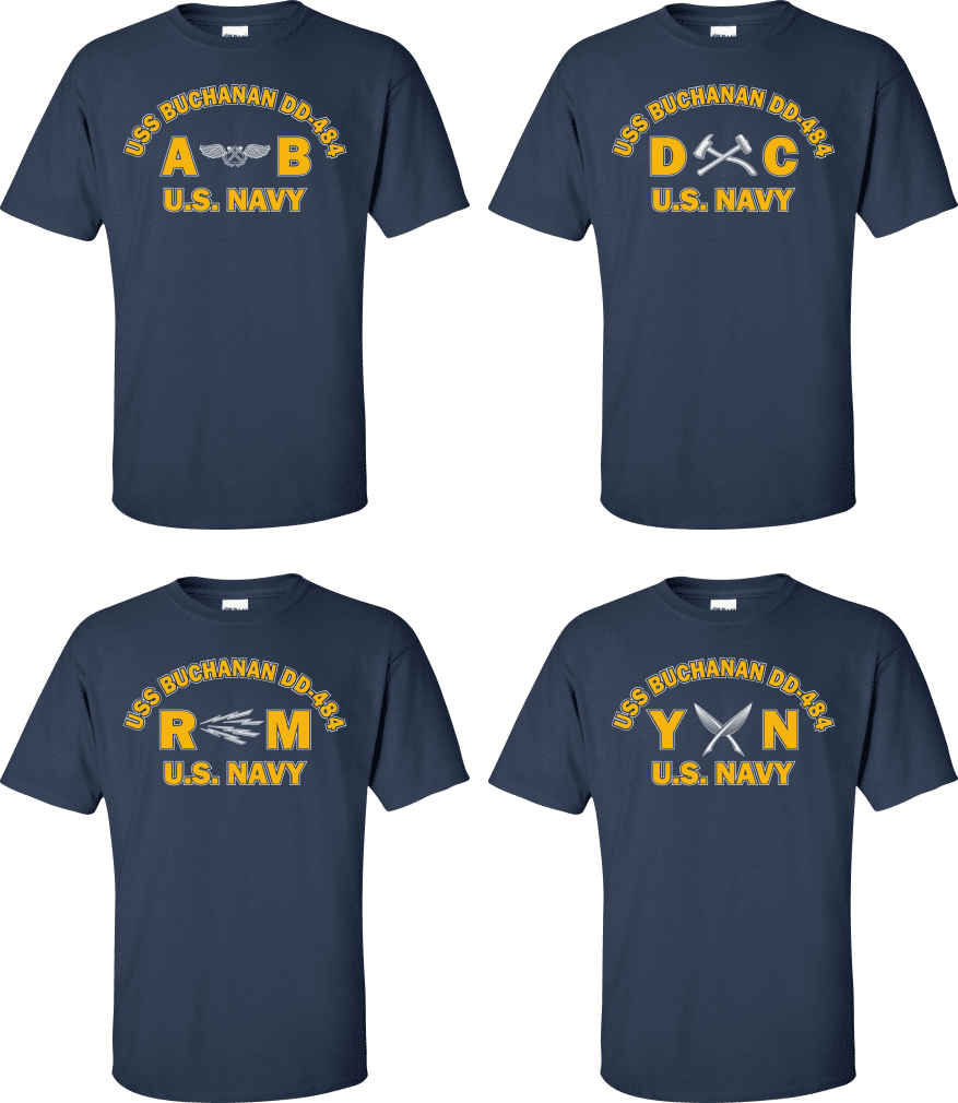 Due to disruptions in supply chains, this design will be embroidered on a Champion, Gildan, Jerzees or comparable brand.Proudly display your ship and rate with our top quality USS BUCHANAN DD-484 Rates t-shirts, sweatshirts, and hoodies. These fine U.S. Navy apparel items will make you the envy of your veteran buddies, or will make a fine gift! Our USS BUCHANAN DD-484 shirts are proudly printed in the USA!