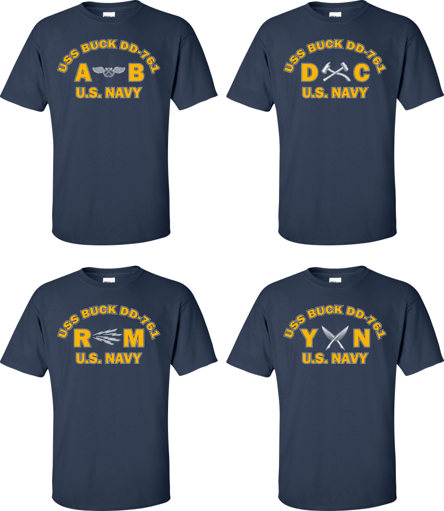 Due to disruptions in supply chains, this design will be embroidered on a Champion, Gildan, Jerzees or comparable brand.Proudly display your ship and rate with our top quality USS BUCK DD-761 Rates t-shirts, sweatshirts, and hoodies. These fine U.S. Navy apparel items will make you the envy of your veteran buddies, or will make a fine gift! Our USS BUCK DD-761 shirts are proudly printed in the USA!