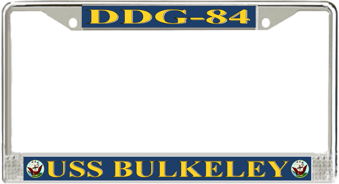 USS Bulkeley DDG-84 License Plate FrameThis USS Bulkeley DDG-84 License Plate Frame is proudly made in the USA at our facilities in Scottsboro, Alabama. Each of our MilitaryBest U.S. Navy Frames feature top and bottom Poly Coated Aluminum strips that are printed using sublimation which gives these quality automobile military frames a beautiful high gloss finish.