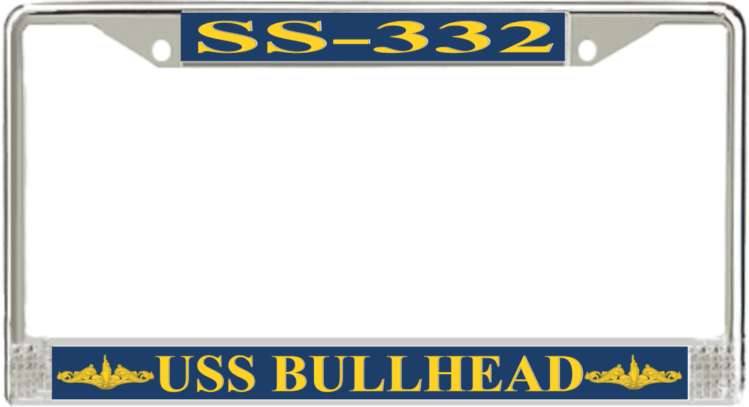 USS Bullhead SS-332 License Plate Frame This USS Bullhead SS-332 License Plate Frame is proudly made in the USA at our facilities in Scottsboro, Alabama. Each Frame features top and bottom sublimated design strips that are poly coated for a protective gloss finish. Please check your state and local regulations for compatibility of these frames for use on your vehicle.