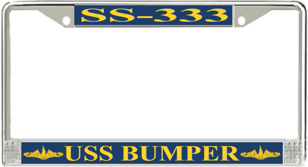 USS Bumper SS-333 License Plate Frame This USS Bumper SS-333 License Plate Frame is proudly made in the USA at our facilities in Scottsboro, Alabama. Each Frame features top and bottom sublimated design strips that are poly coated for a protective gloss finish. Please check your state and local regulations for compatibility of these frames for use on your vehicle.