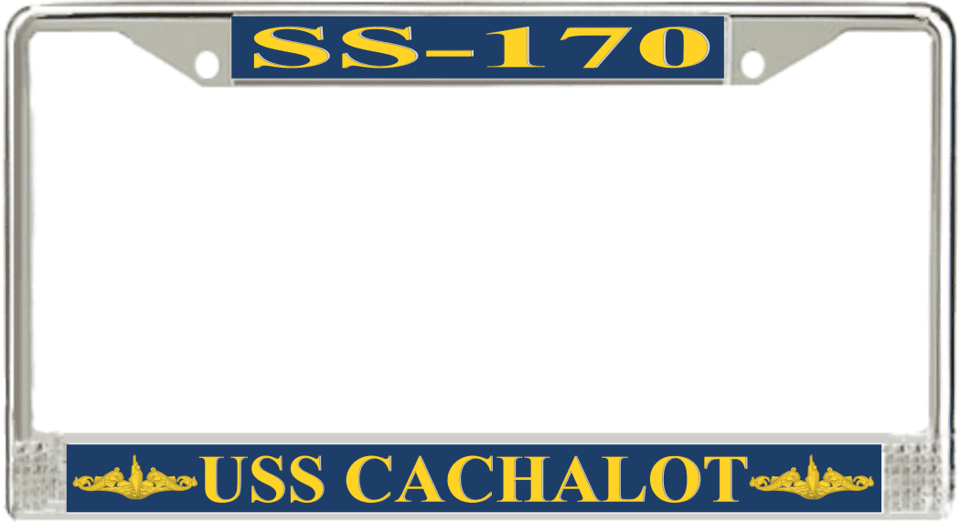 USS Cachalot SS-170 License Plate Frame This USS Cachalot SS-170 License Plate Frame is proudly made in the USA at our facilities in Scottsboro, Alabama. Each Frame features top and bottom sublimated design strips that are poly coated for a protective gloss finish. Please check your state and local regulations for compatibility of these frames for use on your vehicle.