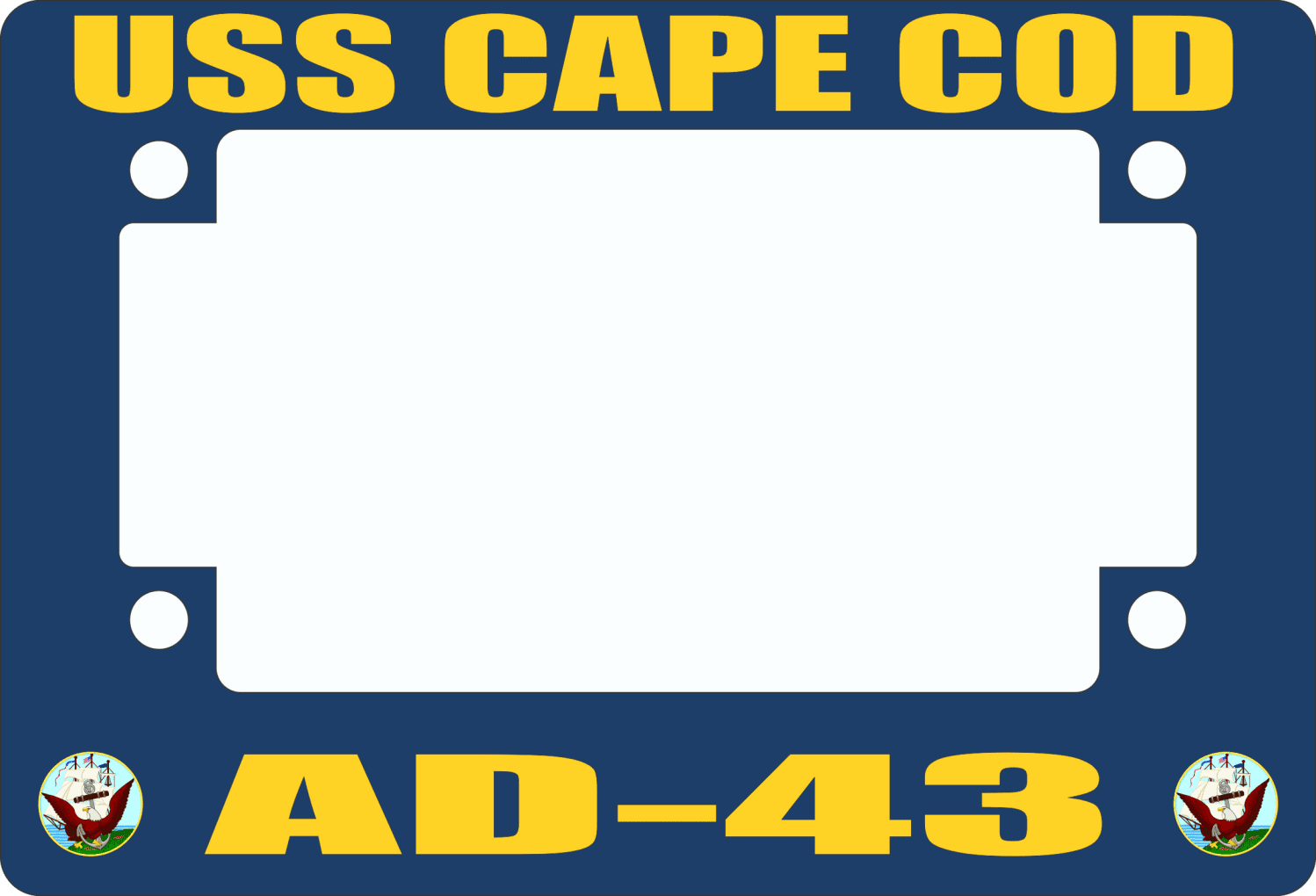 This USS Cape Cod AD-43 Motorcycle Frame is proudly made in the USA at our facilities in Scottsboro, Alabama. Each frame is made with fiberglass reinforced plastic and measures 5-1/16" x 7 7/16. This Motorcycle Frame would make a wonderful addition to your collection or a great gift. Its quality is guaranteed.