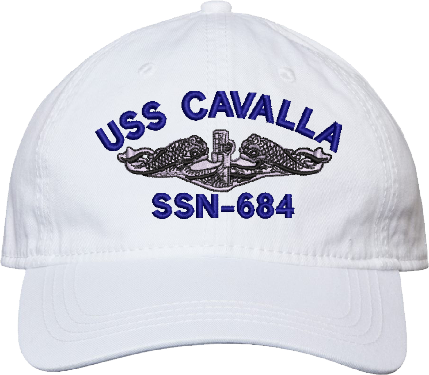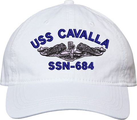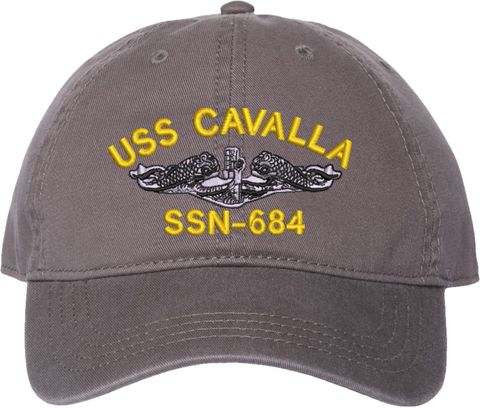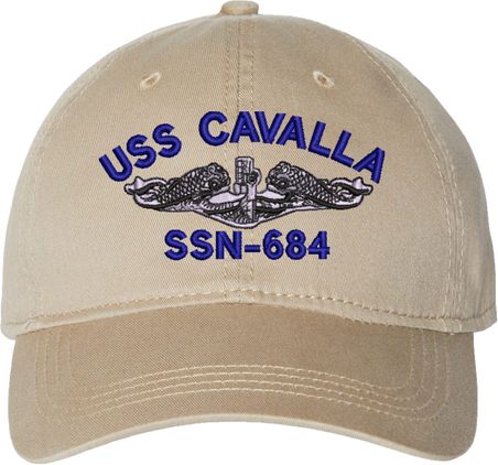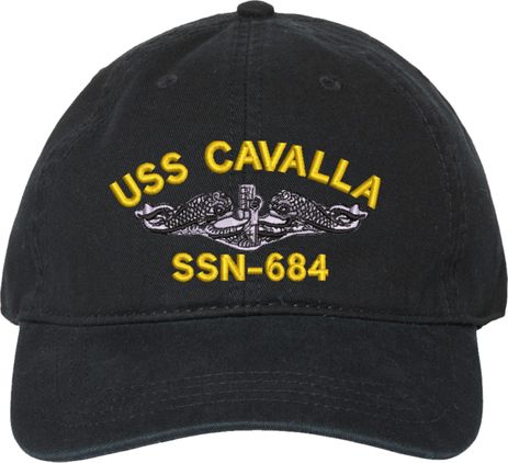 Show your Navy pride with this USS Cavalla SSN-684 with Dolphins Unstructured Dad Cap from MilitaryBest. Crafted from 100% washed chino twill cotton, this six-panel, low-profile cap offers a relaxed and comfortable fit. Featuring high-quality embroidery done in our Scottsboro, Alabama facility, this cap is designed with a pre-curved visor and an adjustable tri-glide buckle closure for a perfect fit. Whether for everyday wear or as a meaningful gift, this cap is a great way to honor your own or a loved one's service.For caps ordered with custom embroidered personalized text please allow an additional 3 to 5 days production time. All custom back text will be embroidered in ALL CAPITAL LETTERS. Caps with back text or eggs are non-returnable unless there is a material defect in the cap.