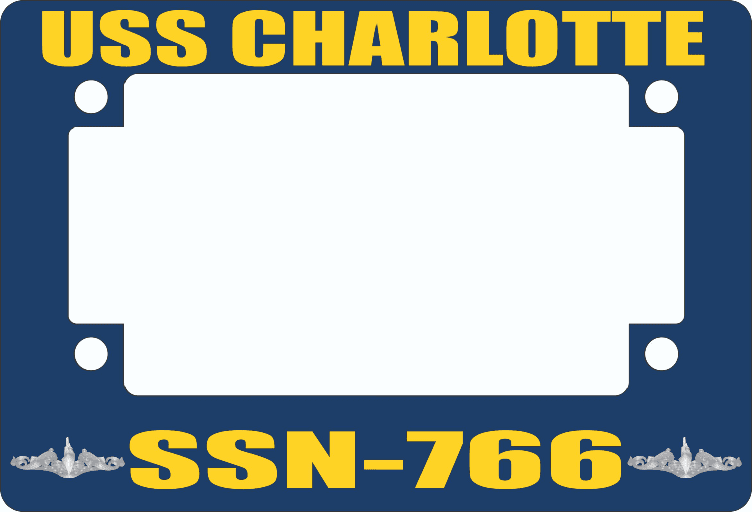 This USS Charlotte SSN-766 Motorcycle Frame is proudly made in the USA at our facilities in Scottsboro, Alabama. Each frame is made with fiberglass reinforced plastic and measures 5-1/16" x 7 7/16. This Motorcycle Frame would make a wonderful addition to your collection or a great gift. Its quality is guaranteed.