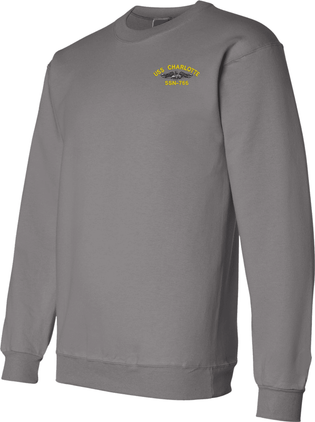 MilitaryBest has expanded its line of apparel with this custom embroidered USS Charlotte SSN-766 with Dolphins Embroidered Sweatshirt. This Sweatshirt will make an excellent addition to your wardrobe, or a great gift. Your satisfaction is Guaranteed! These quality sweatshirts are proudly embroidered at our facilities in Scottsboro, AL. Support the Army MWR program by purchasing only from Licensed Vendors.