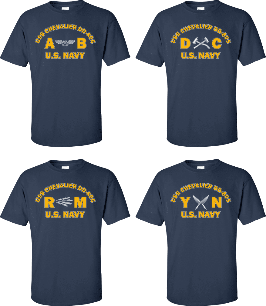 Due to disruptions in supply chains, this design will be embroidered on a Champion, Gildan, Jerzees or comparable brand.Proudly display your ship and rate with our top quality USS CHEVALIER DD-805 Rates t-shirts, sweatshirts, and hoodies. These fine U.S. Navy apparel items will make you the envy of your veteran buddies, or will make a fine gift! Our USS CHEVALIER DD-805 shirts are proudly printed in the USA!