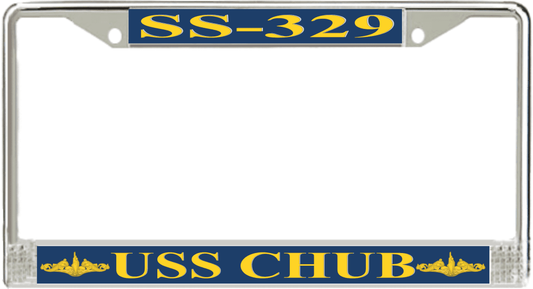 USS Chub SS-329 License Plate Frame This USS Chub SS-329 License Plate Frame is proudly made in the USA at our facilities in Scottsboro, Alabama. Each Frame features top and bottom sublimated design strips that are poly coated for a protective gloss finish. Please check your state and local regulations for compatibility of these frames for use on your vehicle.