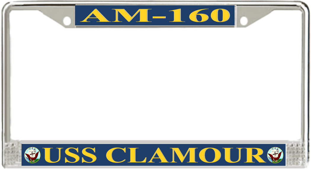 USS Clamour AM-160 License Plate FrameThis USS Clamour AM-160 License Plate Frame is proudly made in the USA at our facilities in Scottsboro, Alabama. Each of our MilitaryBest U.S. Navy Frames feature top and bottom Poly Coated Aluminum strips that are printed using sublimation which gives these quality automobile military frames a beautiful high gloss finish.