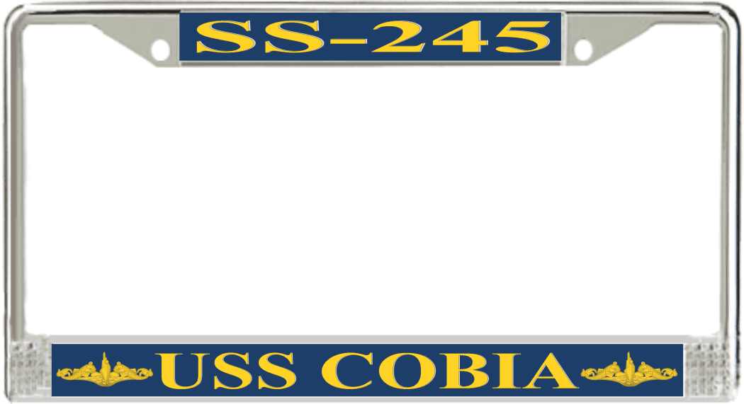 USS Cobia SS-245 License Plate Frame This USS Cobia SS-245 License Plate Frame is proudly made in the USA at our facilities in Scottsboro, Alabama. Each Frame features top and bottom sublimated design strips that are poly coated for a protective gloss finish. Please check your state and local regulations for compatibility of these frames for use on your vehicle.