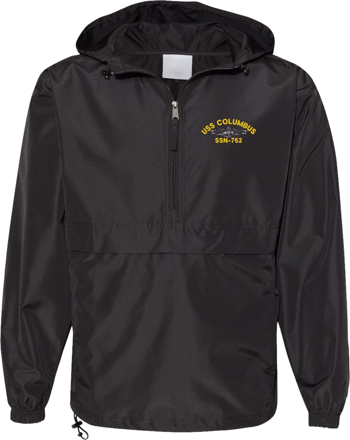 MilitaryBest is proud to offer this quality USS Columbus SSN-762 with Dolphins Hooded Windbreaker. Also known as an Anorak Jacket, this windbreaker is designed to keep wind and water out. With a design embroidered over the left chest, this windbreaker is embroidered to order at our facilities in Scottsboro, AL.. This windbreaker can be packed into the mesh lined pouch pocket for a more portable method of storage.- 100% Polyester