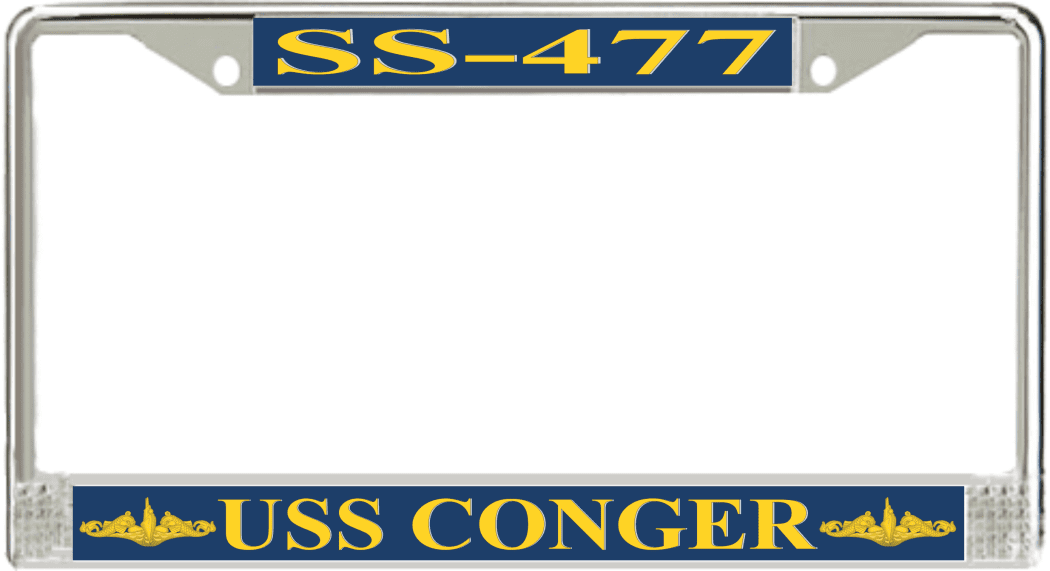 USS Conger SS-477 License Plate Frame This USS Conger SS-477 License Plate Frame is proudly made in the USA at our facilities in Scottsboro, Alabama. Each Frame features top and bottom sublimated design strips that are poly coated for a protective gloss finish. Please check your state and local regulations for compatibility of these frames for use on your vehicle.