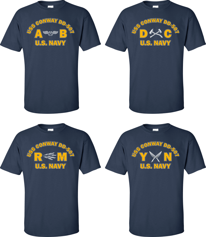 Due to disruptions in supply chains, this design will be embroidered on a Champion, Gildan, Jerzees or comparable brand.Proudly display your ship and rate with our top quality USS CONWAY DD-507 Rates t-shirts, sweatshirts, and hoodies. These fine U.S. Navy apparel items will make you the envy of your veteran buddies, or will make a fine gift! Our USS CONWAY DD-507 shirts are proudly printed in the USA!